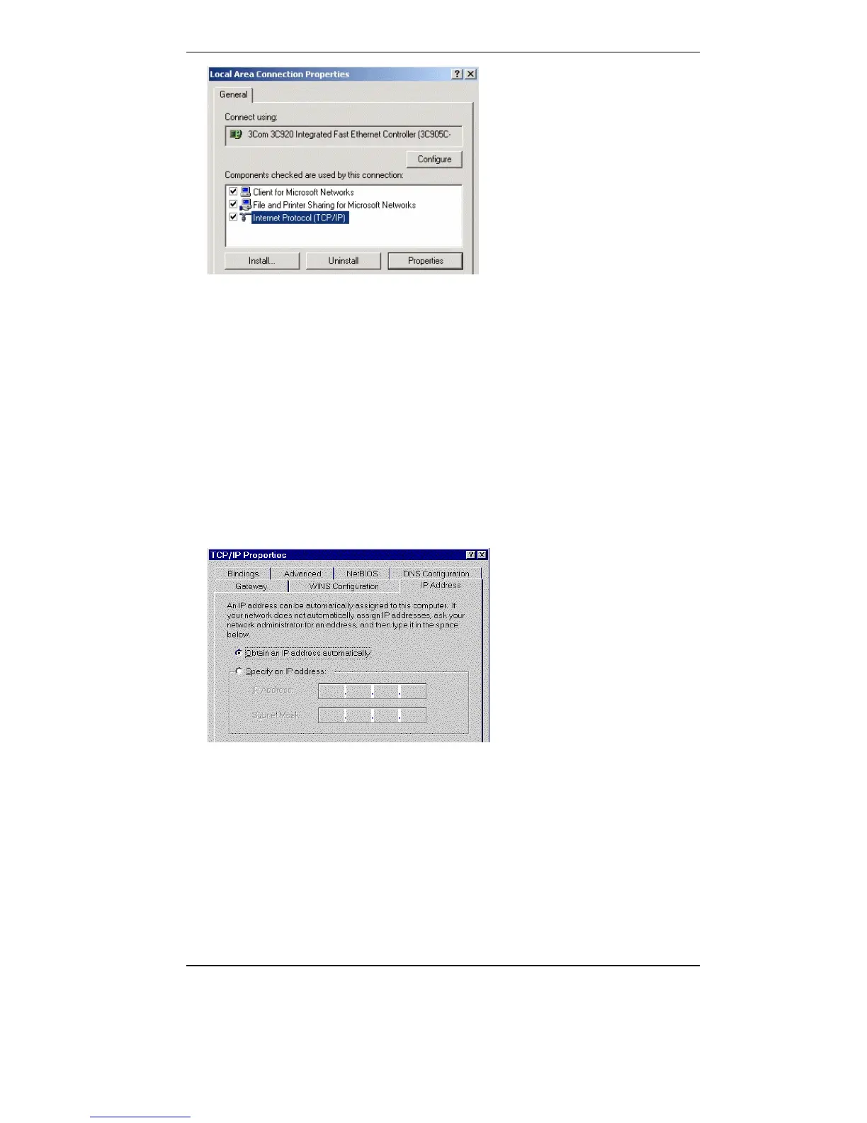 • Select "Microsoft" and thereafter "TCP/IP"