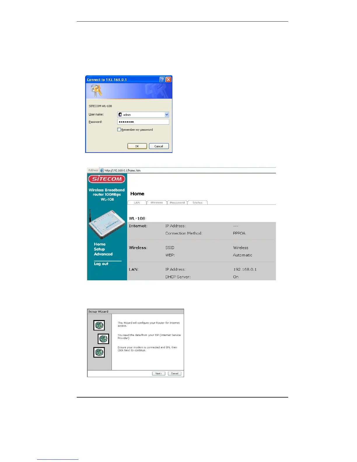 7. The Set up wizard will now be displayed; check that the modem is