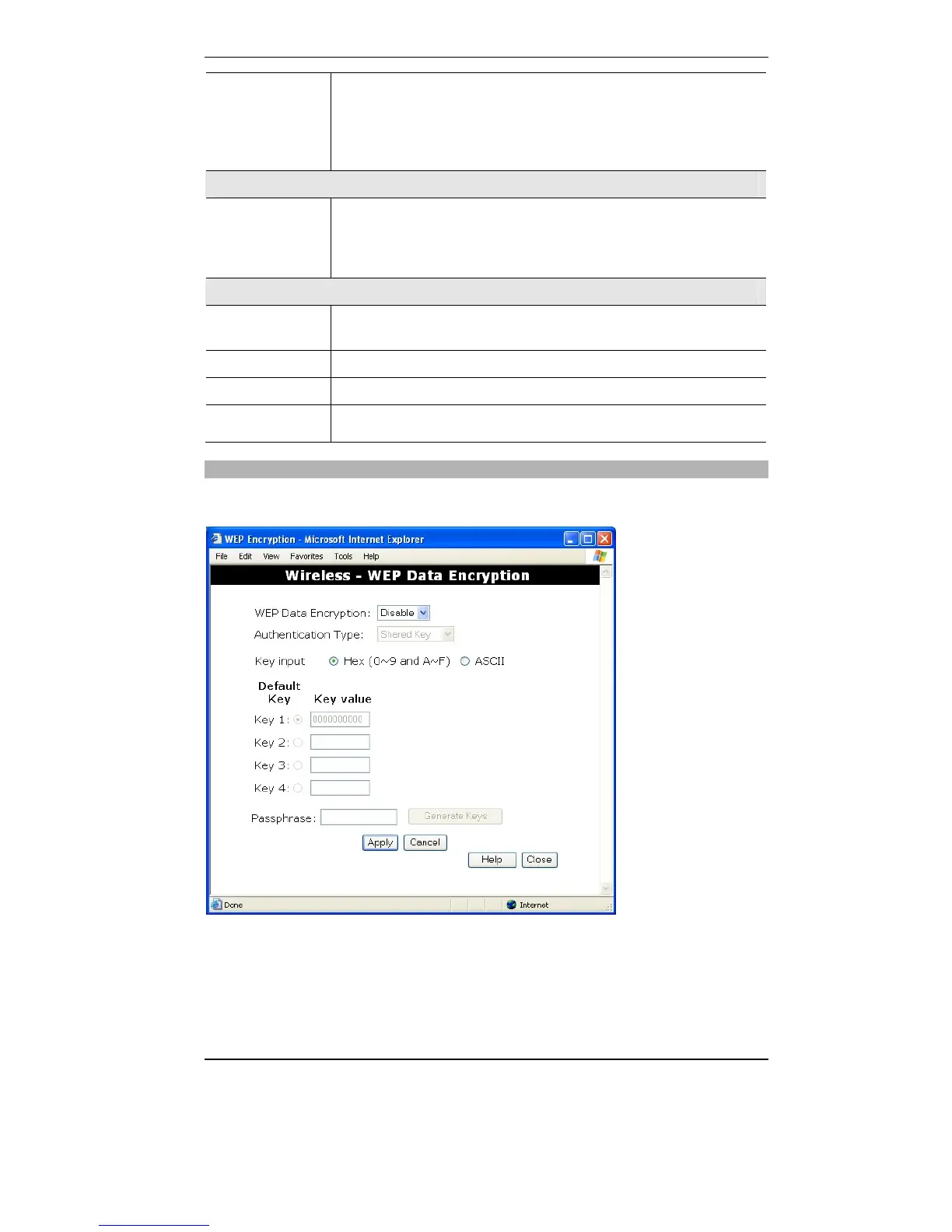Click this button to view the WEP sub-screen. See the following section