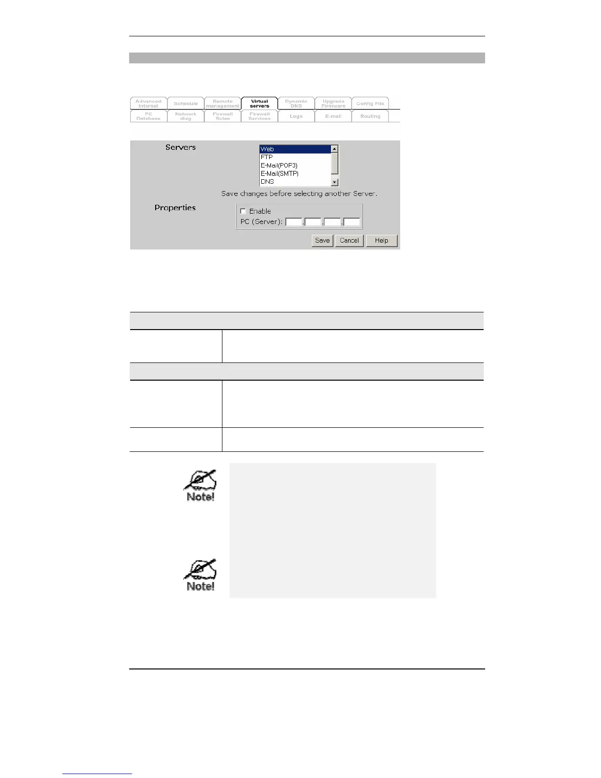 The Virtual Servers screen is reached by the Virtual Servers link on the