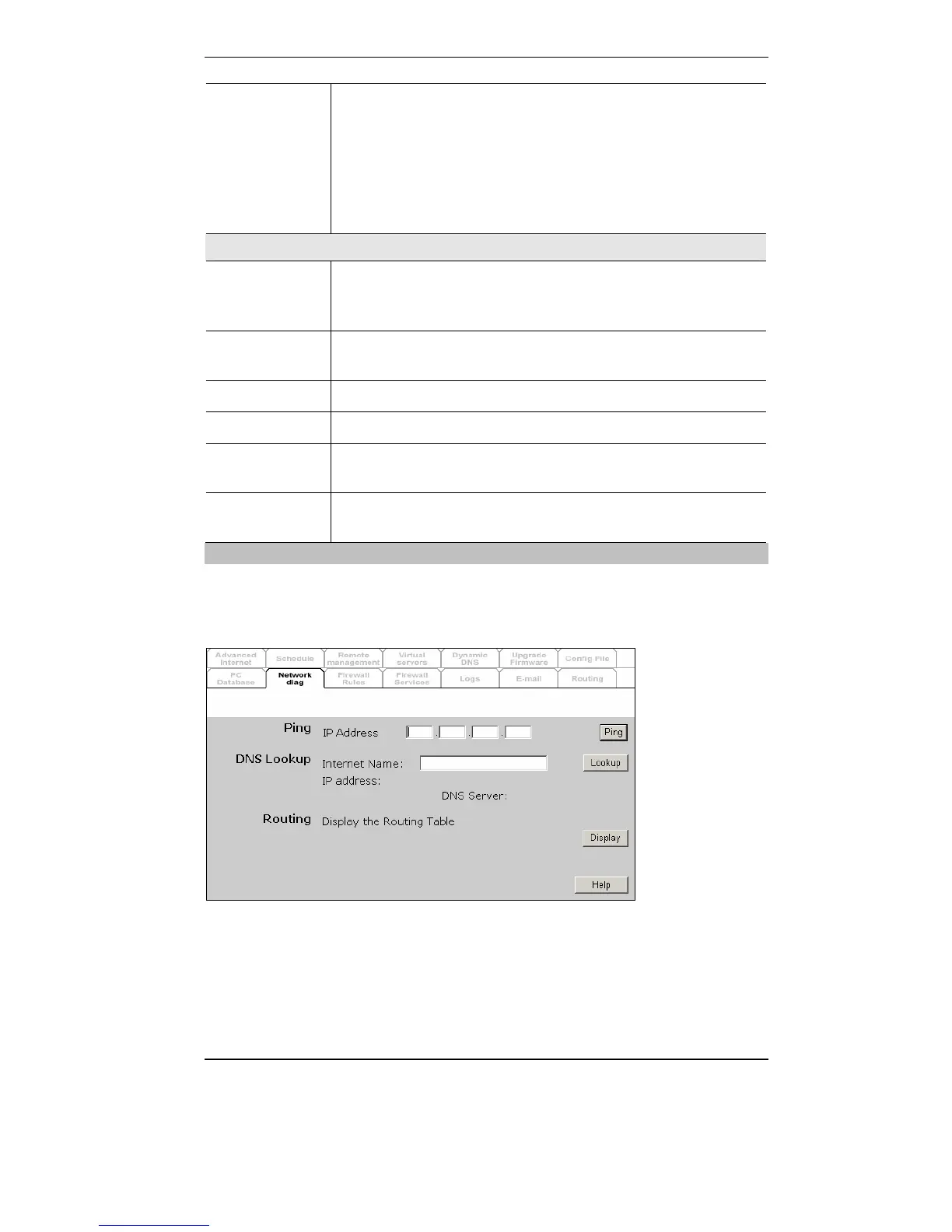 This screen allows you to perform a "Ping" or a DNS lookup. These
