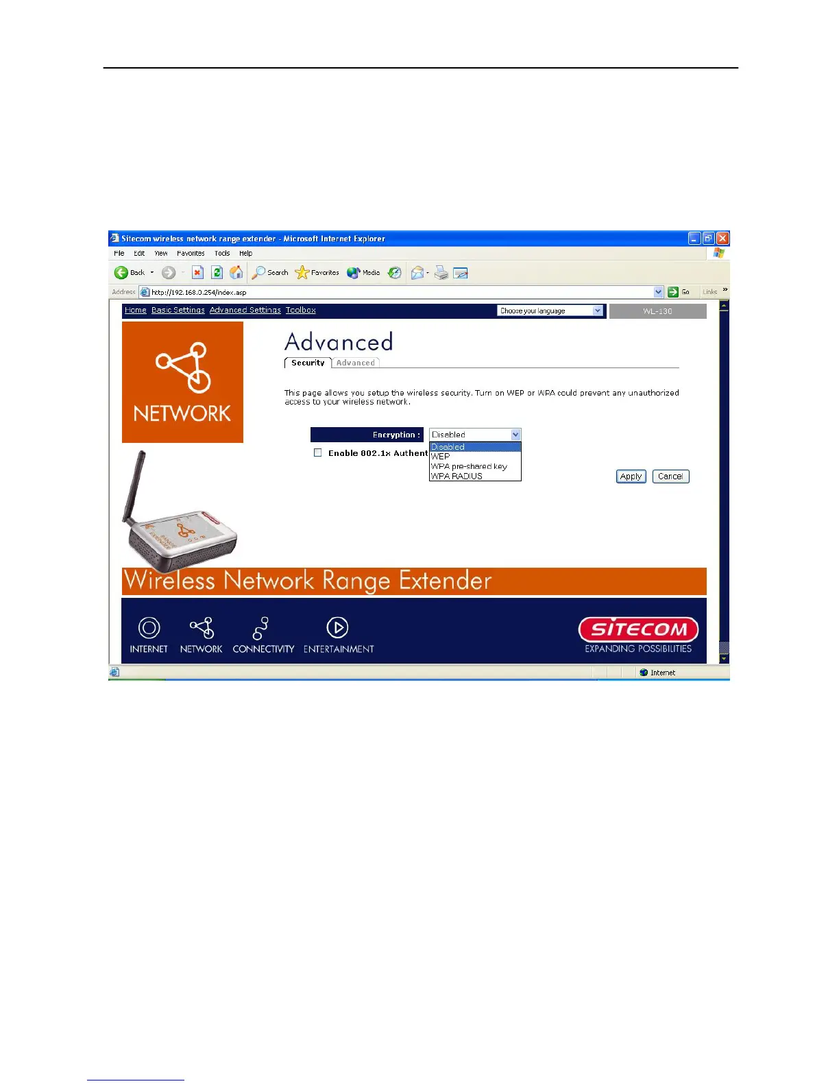 Wireless Range Extender (WL-130) Configuration
