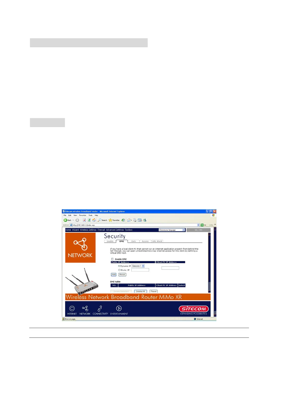 Internet, you can configure a specific client/server as a Demilitarized Zone (DMZ).