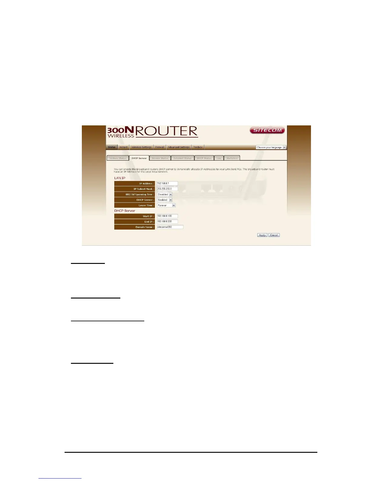 DHCP Server Enabled by default. You can enable or disable the DHCP server.