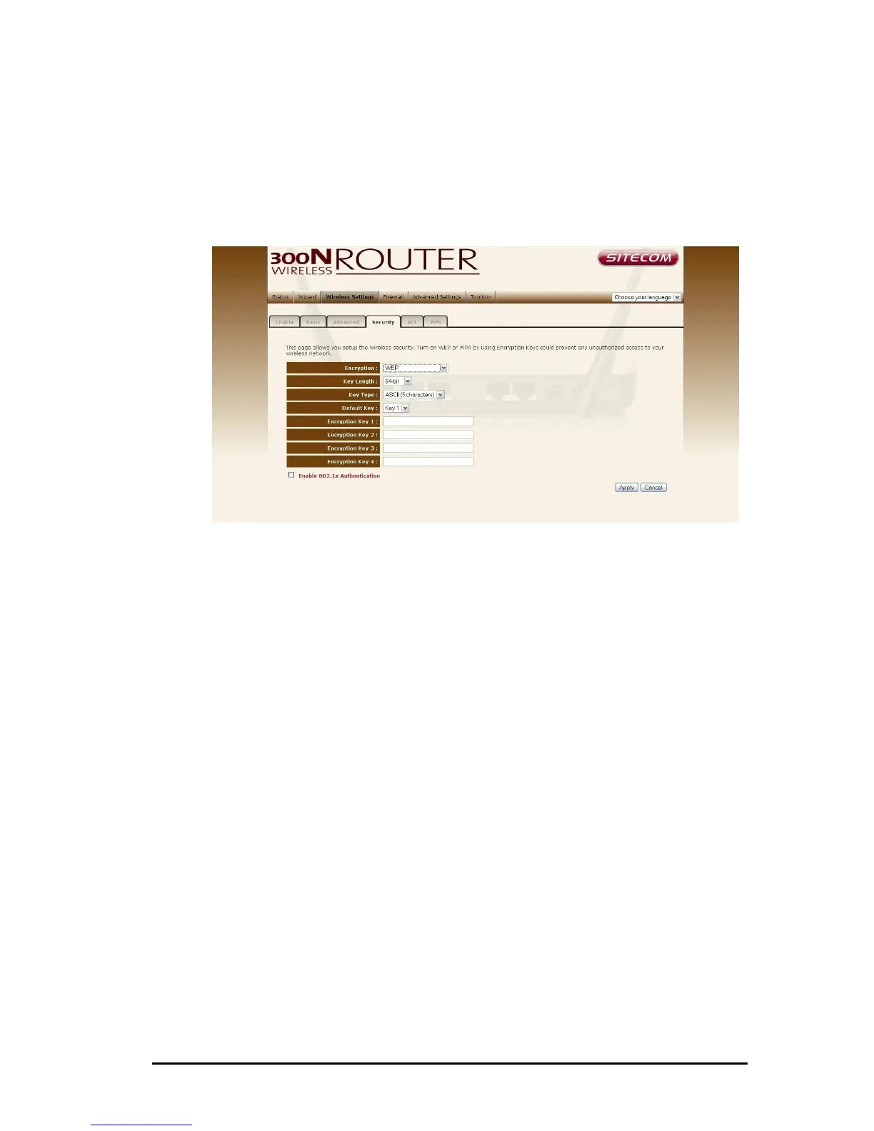 Key Length You can select the WEP key length for encryption, 64-bit or 128-
