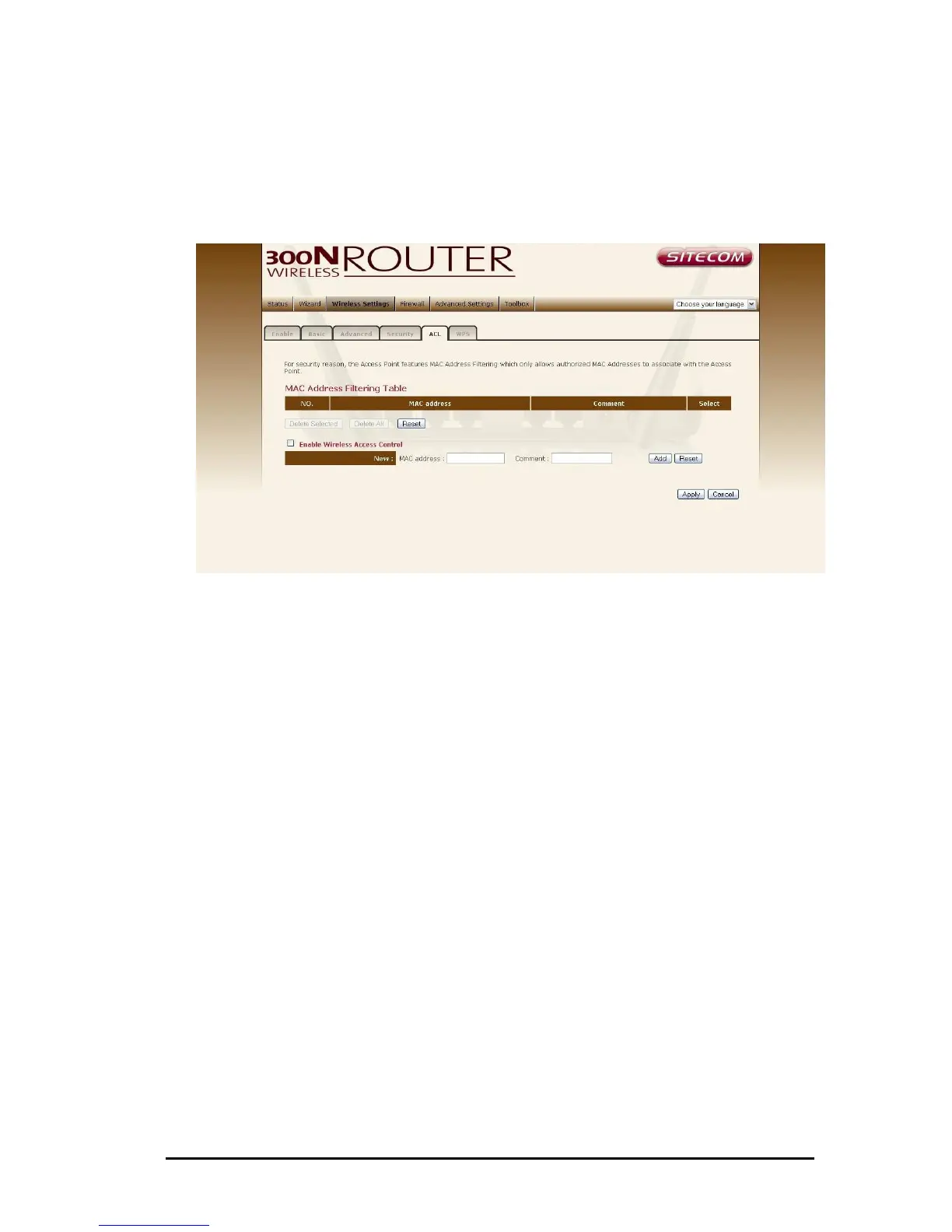 This wireless router supports MAC Address Control, which prevents