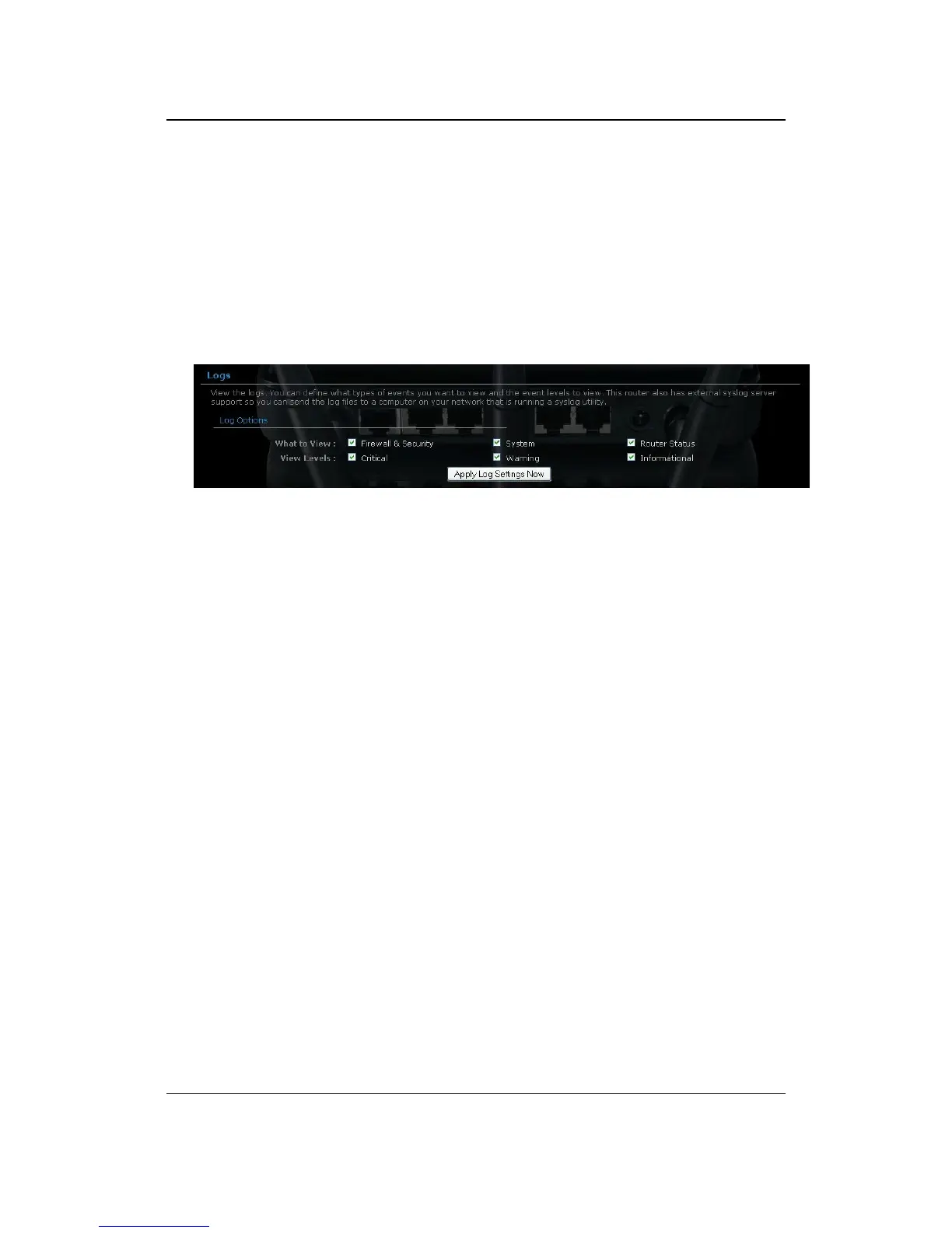 view. This router also has external Syslog Server support so you can send the log
