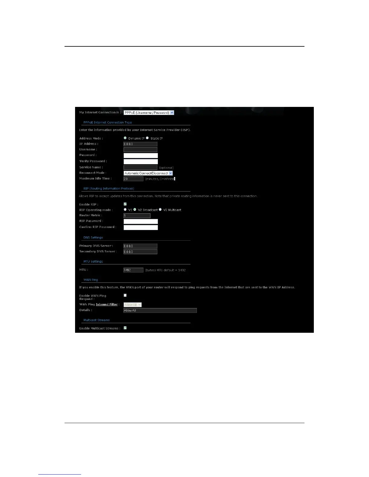 Address Mode: PPPoE can be used with a dynamic or static IP address. If