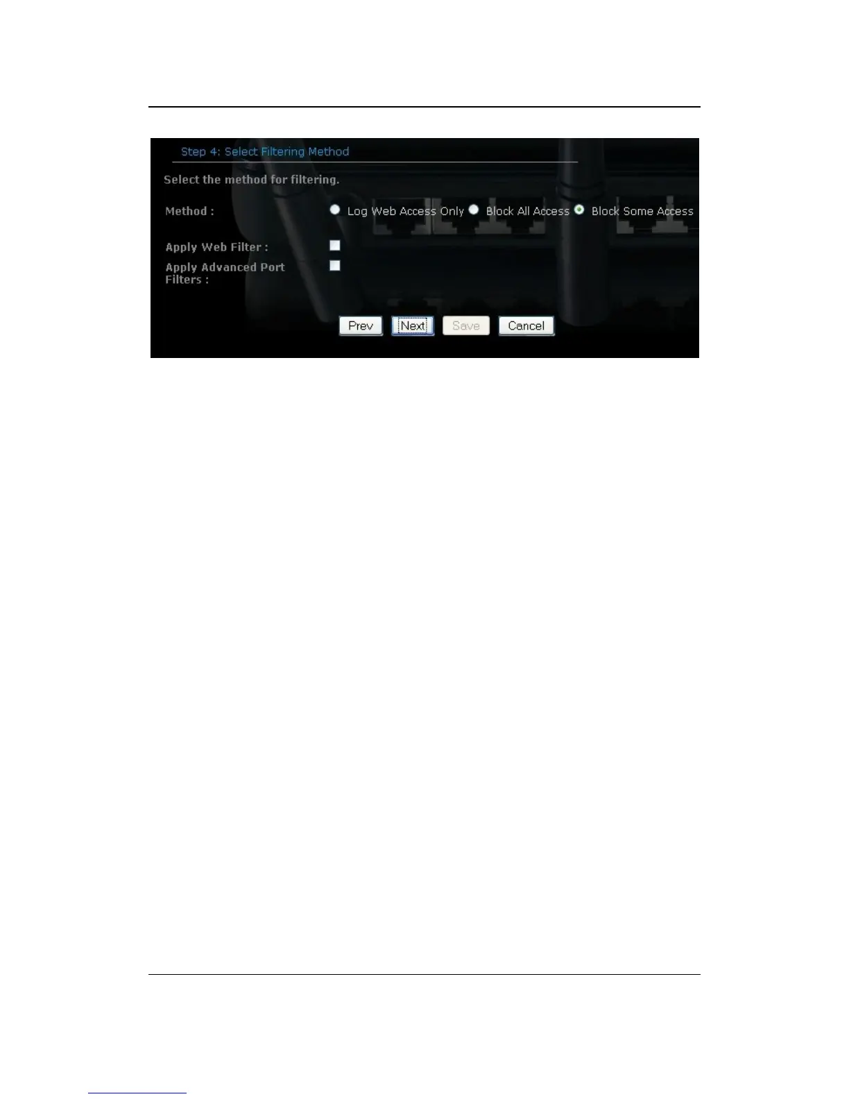 Block Some Access: Select this radio but in order to block some web