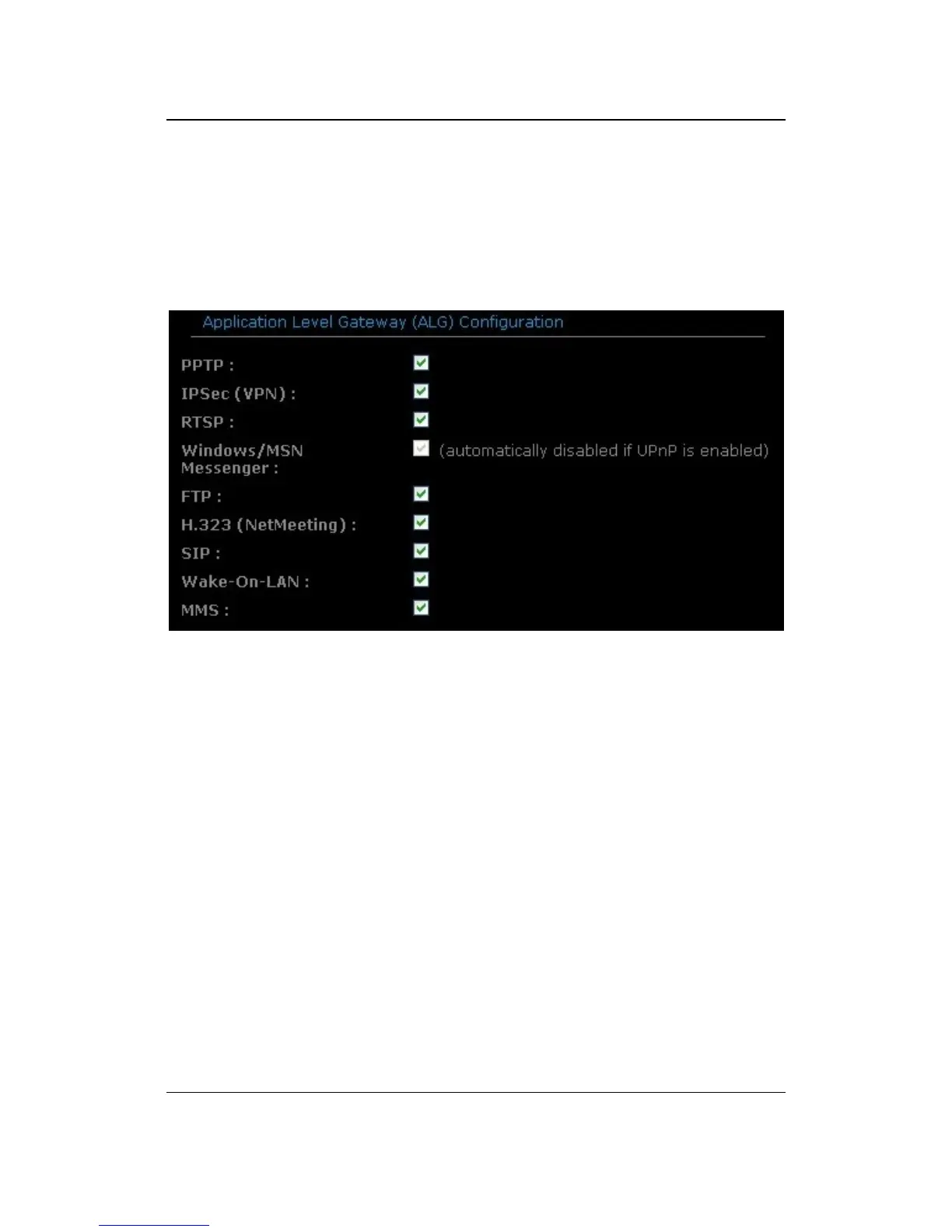 Application Layer Gateway (ALG) Configuration: Place a check in