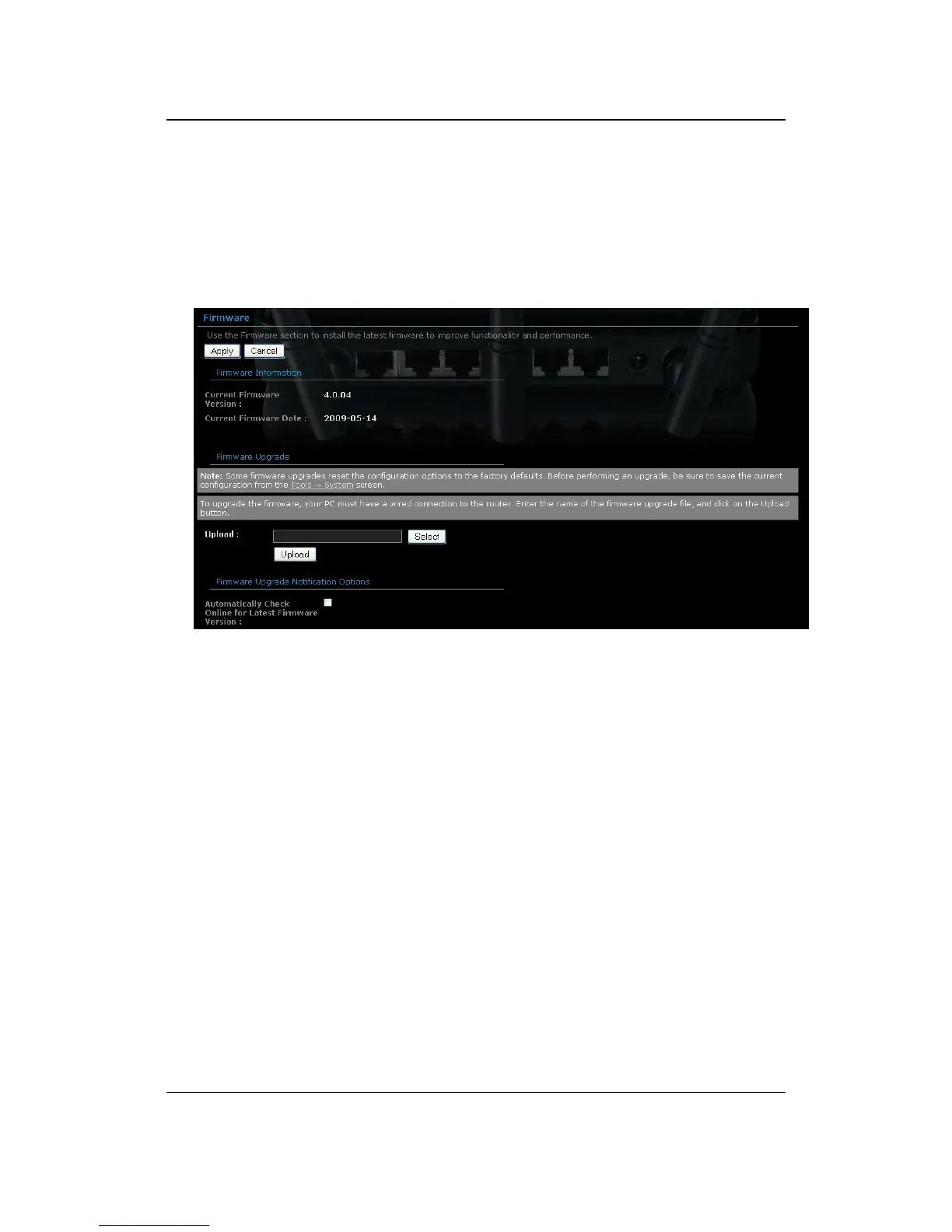 Click on the Firmware link in the navigation menu. This page allows you to