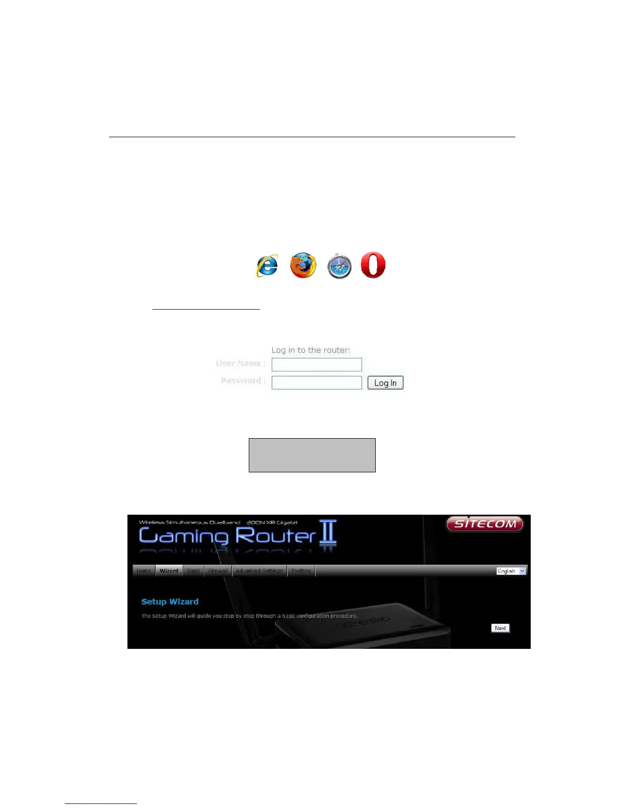 After connecting to the IP address, the web-browser will display the login page.