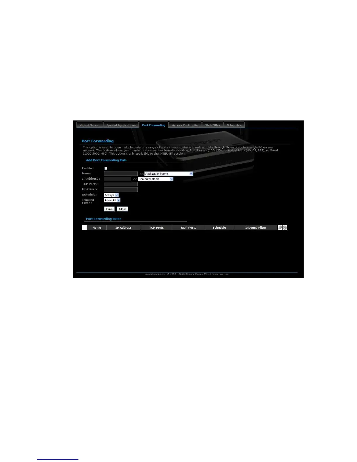Click on the Save button to insert the entry into the Port Forwarding list.