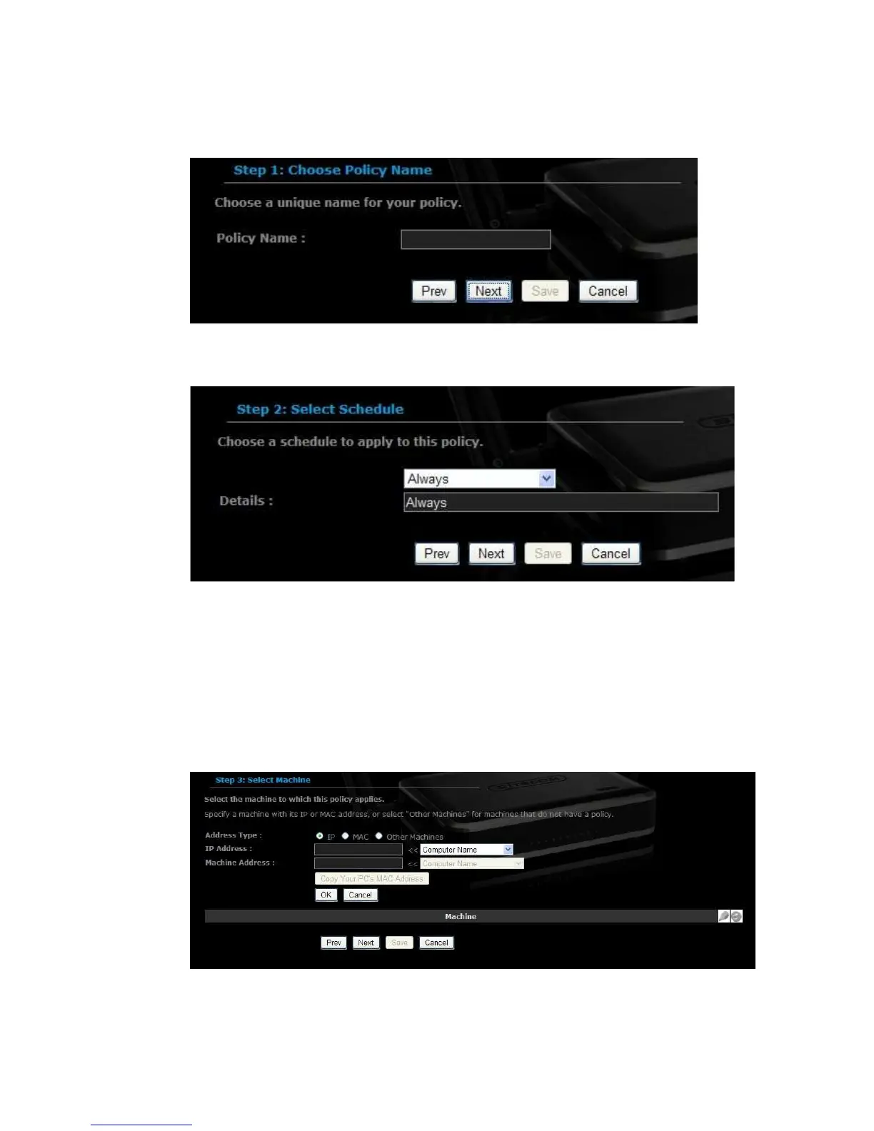 Address Type: Select the IP address or MAC address radio button.