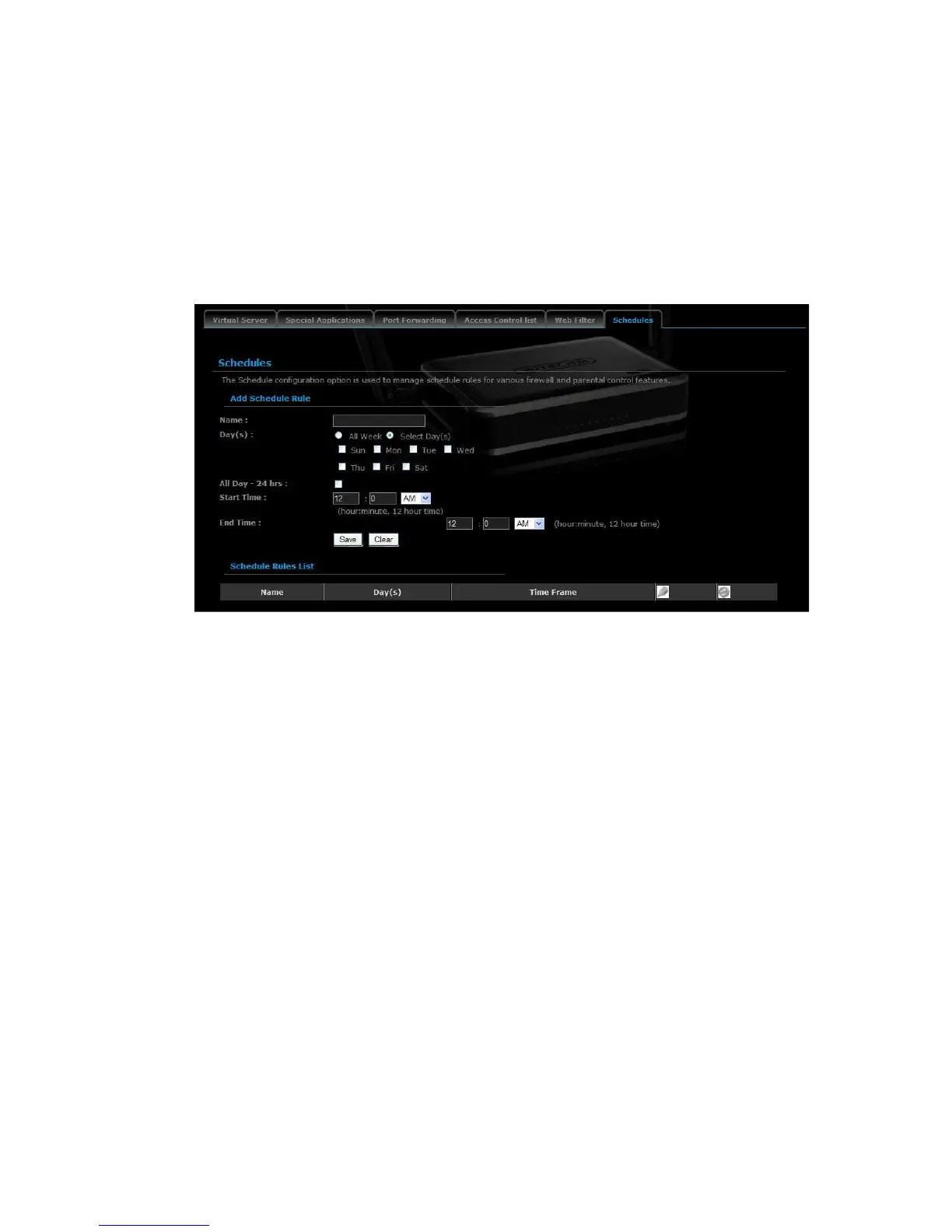 Day(s): Select the days at which you would like the schedule to be effective.