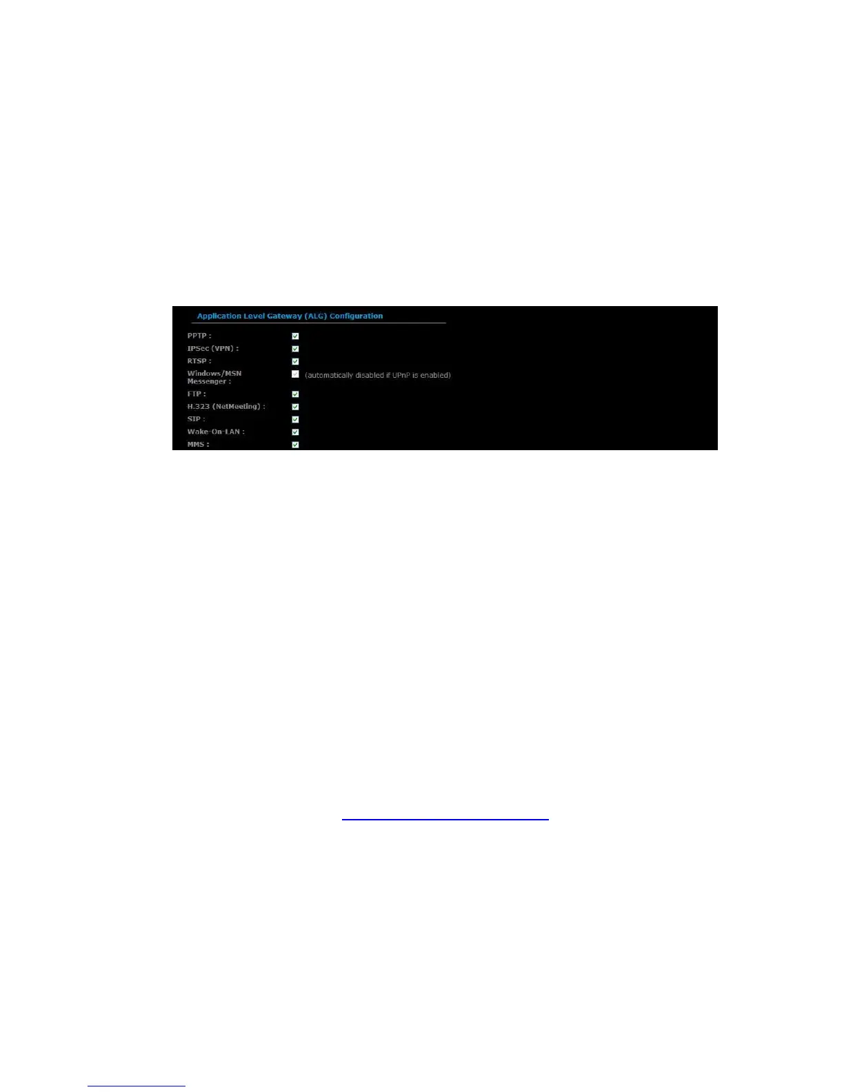 Application Layer Gateway (ALG) Configuration: Place a check in