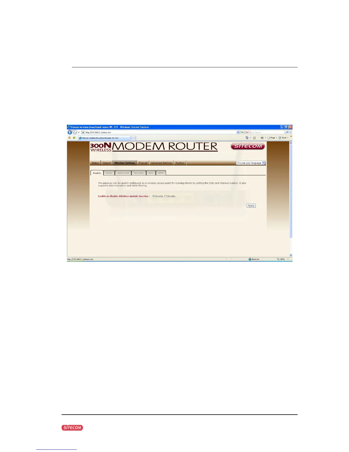 Sitecom WL-322 - Wireless Settings; Wireless Function