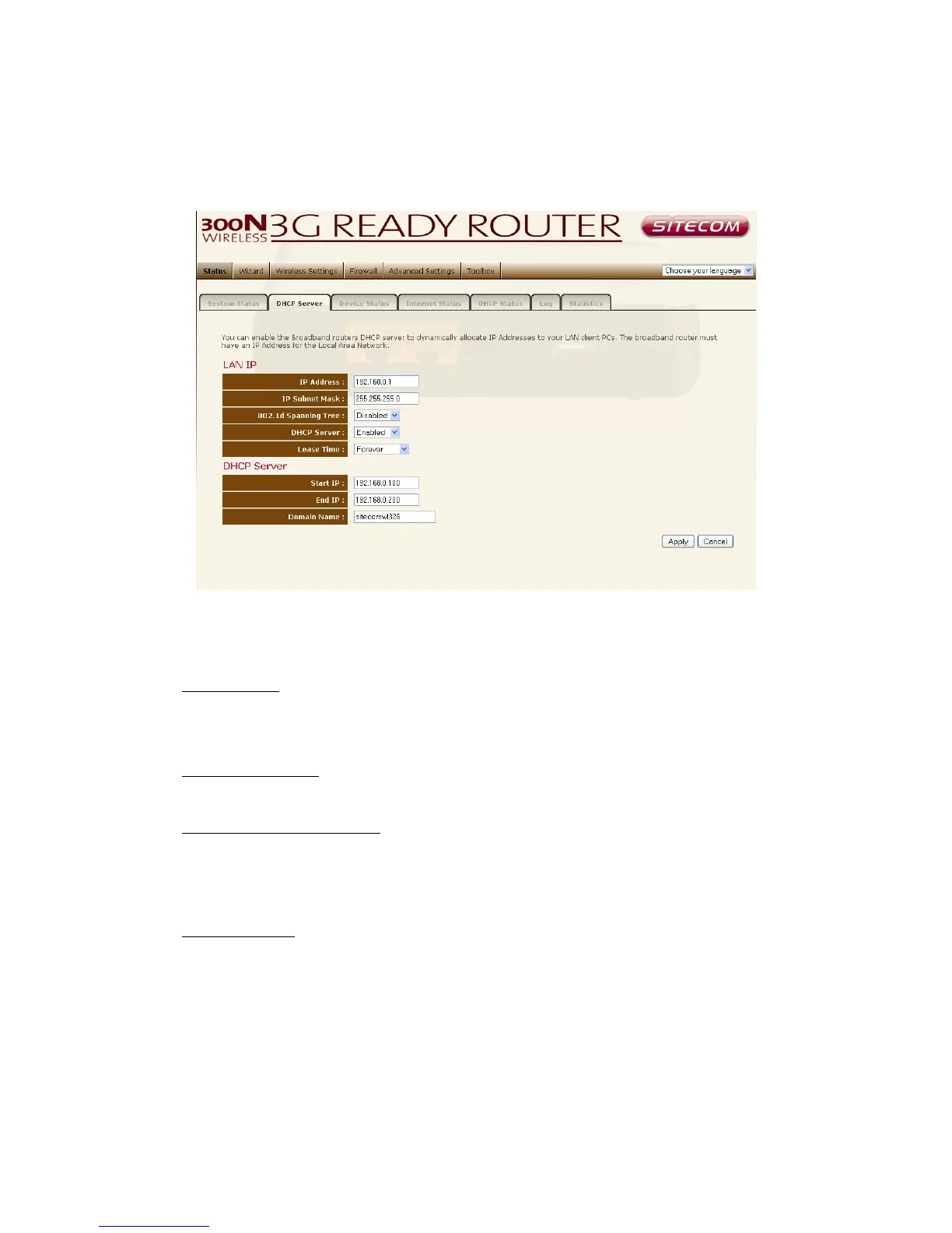 DHCP Server Enabled by default. You can enable or disable the DHCP server.