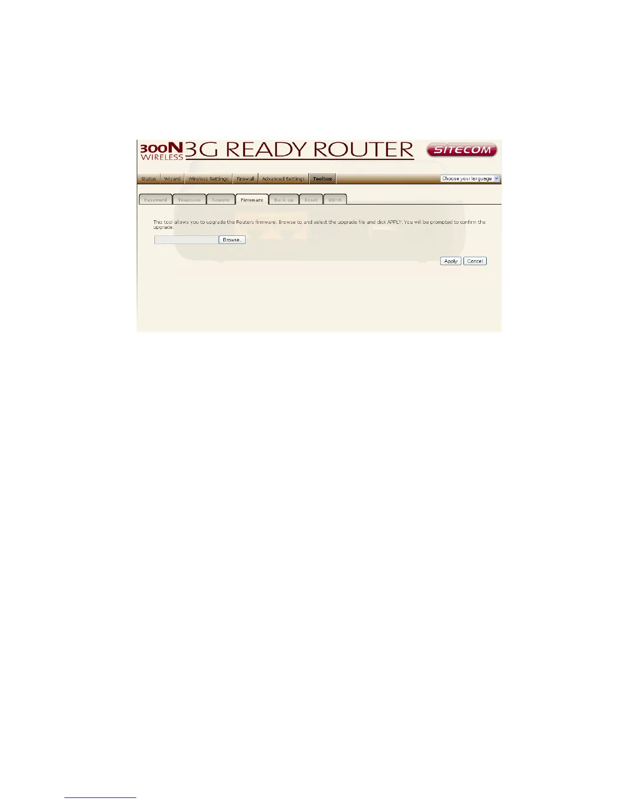 This page allows you to upgrade the router’s firmware.
