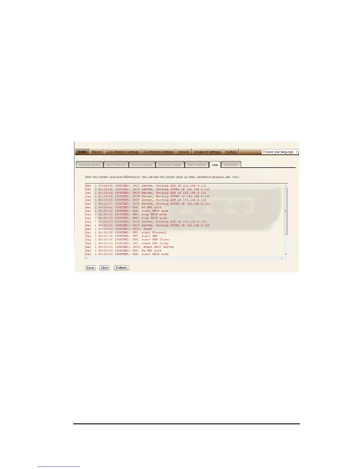 View the operation log of the WL-328. This page shows the current system log