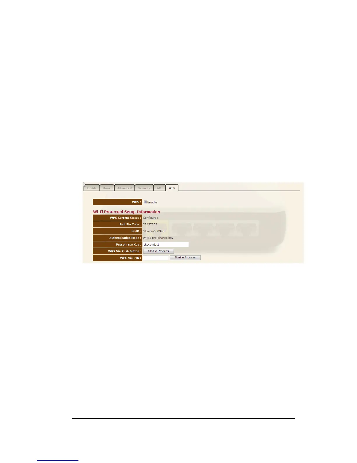 WPS Check the box to enable WPS function and uncheck it to disable the