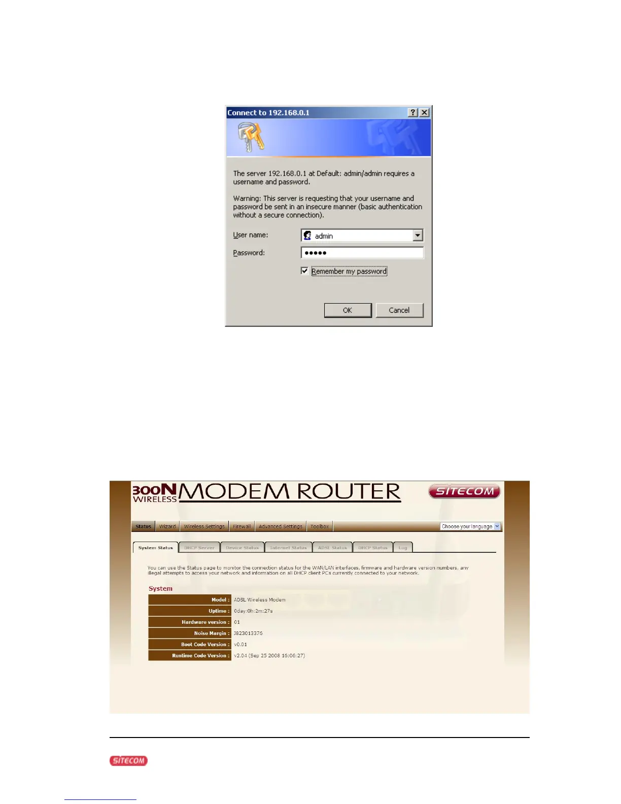 4. Type user name and password (default is admin/admin).