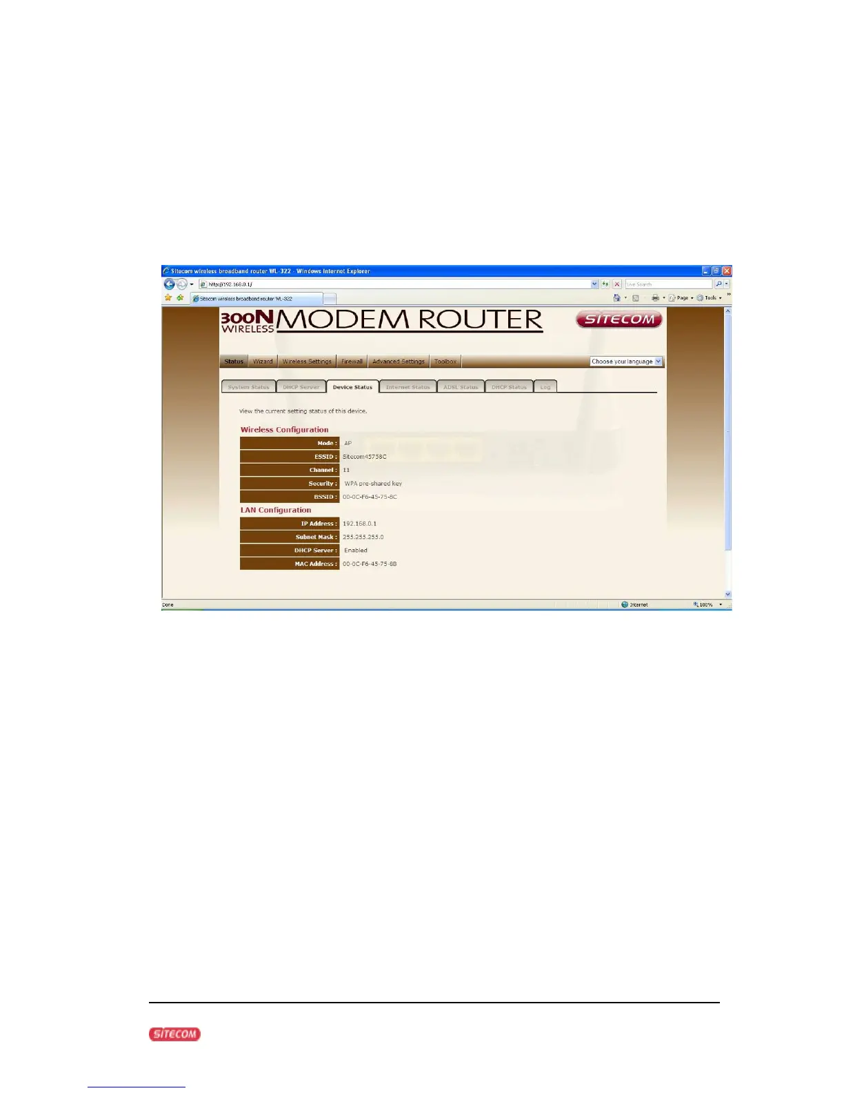 Sitecom WL-346 - Device Status
