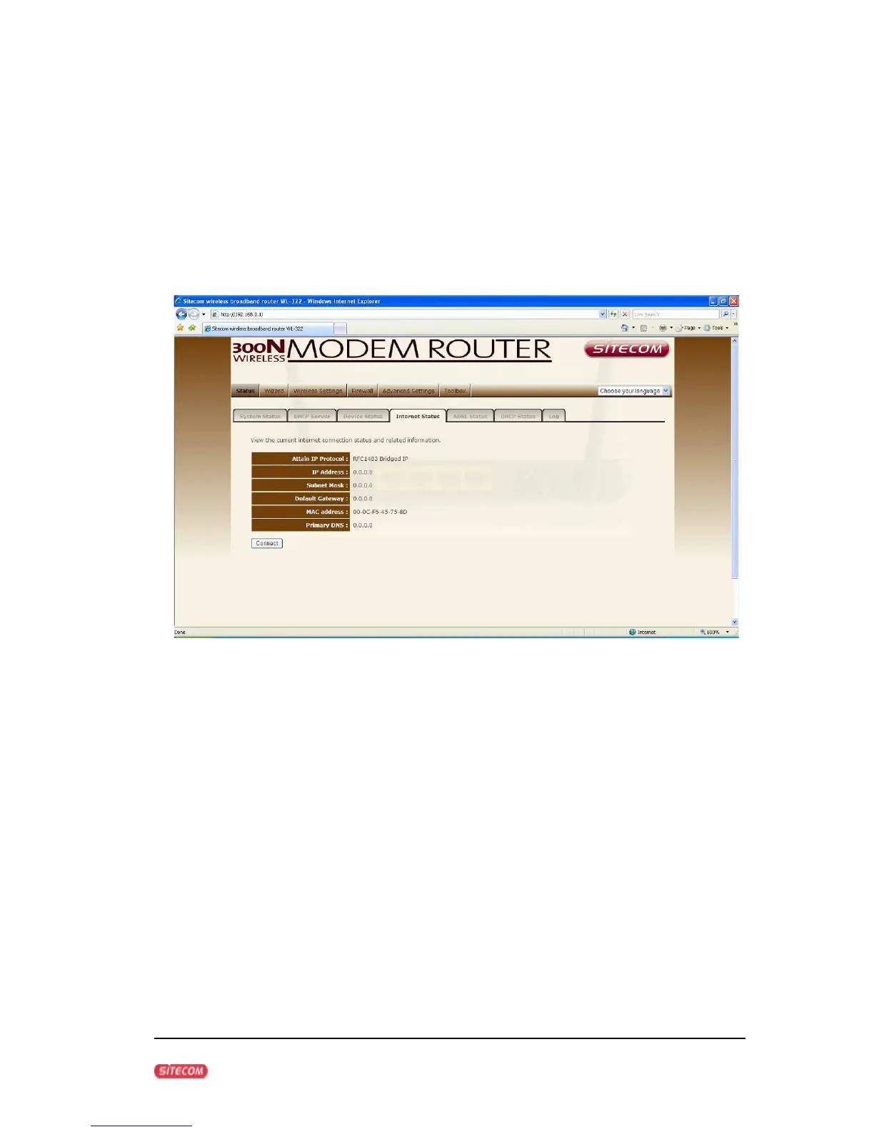 Sitecom WL-346 - Internet Connection Status