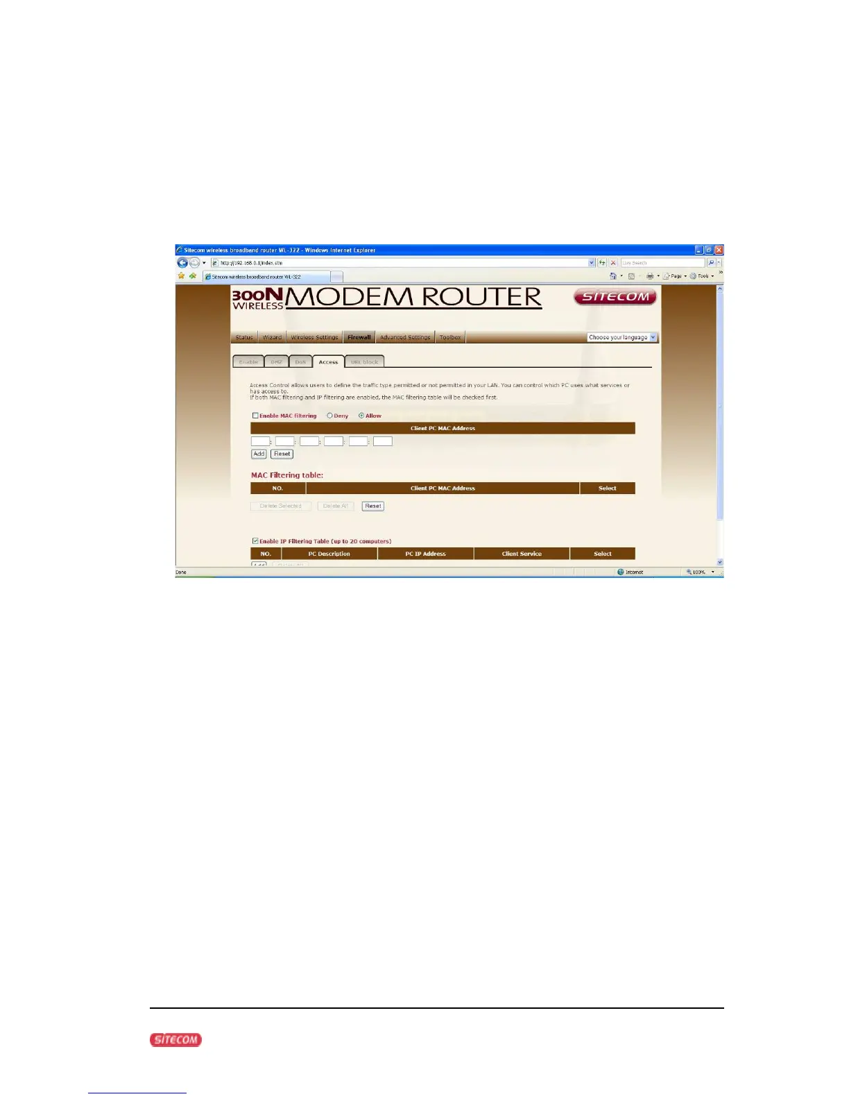 Deny If you select “Deny” then all clients will be allowed to access Internet