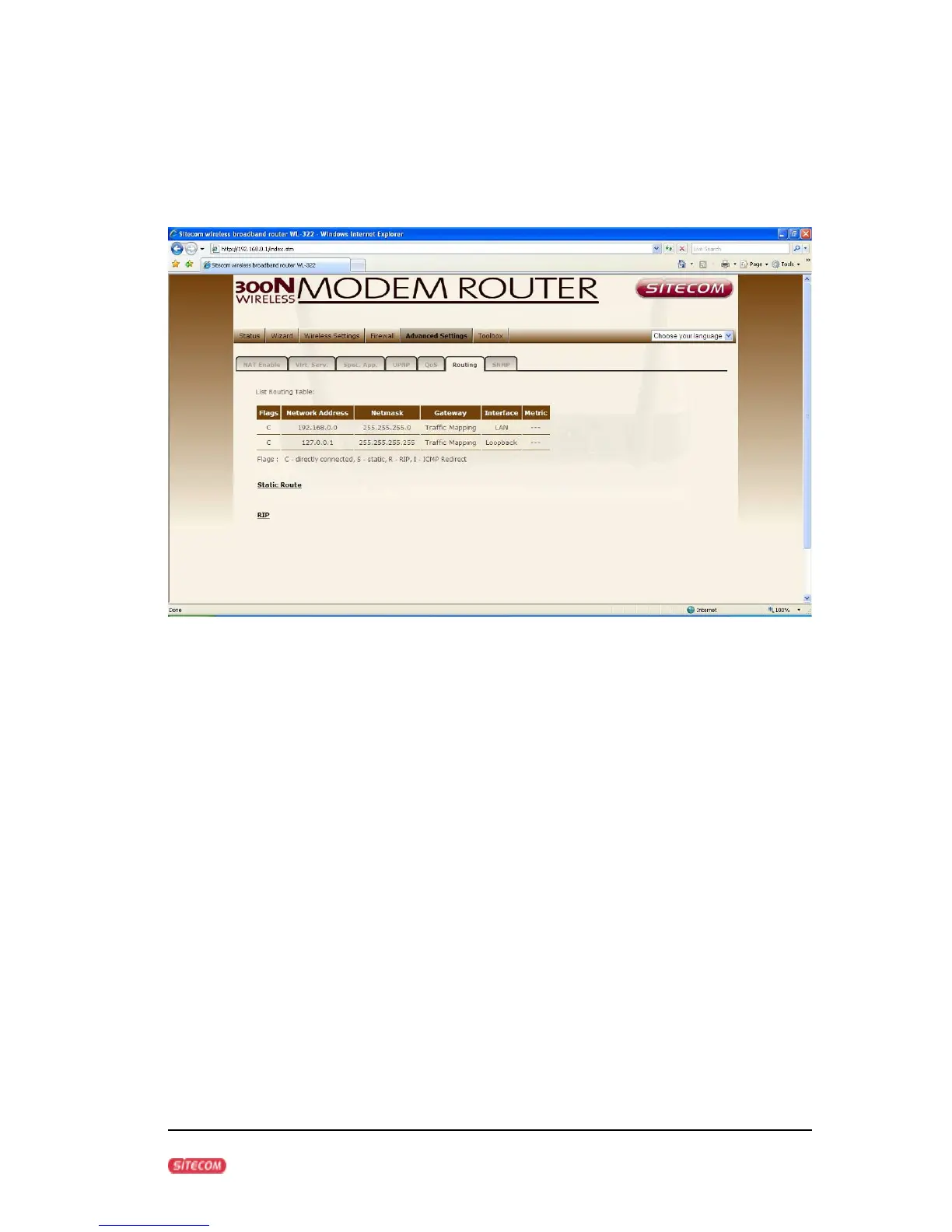 an already entered route and click Modify. Clicking Delete will remove an entry