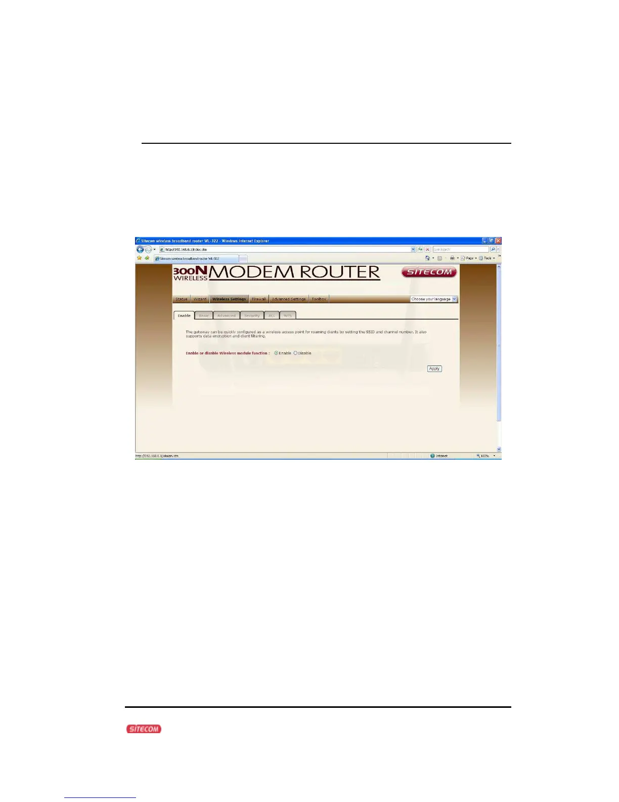 Enable or Disable Wireless function here. Click Apply and wait for module to