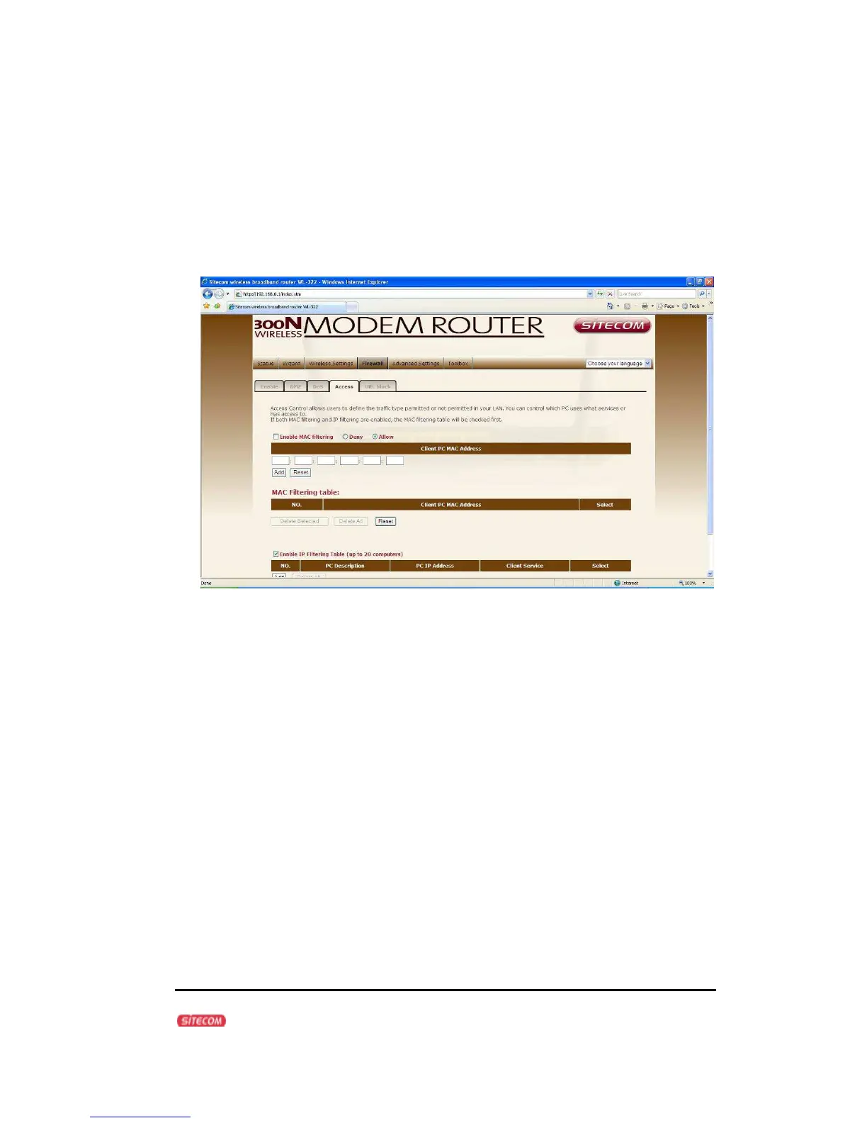 Deny If you select “Deny” then all clients will be allowed to access Internet