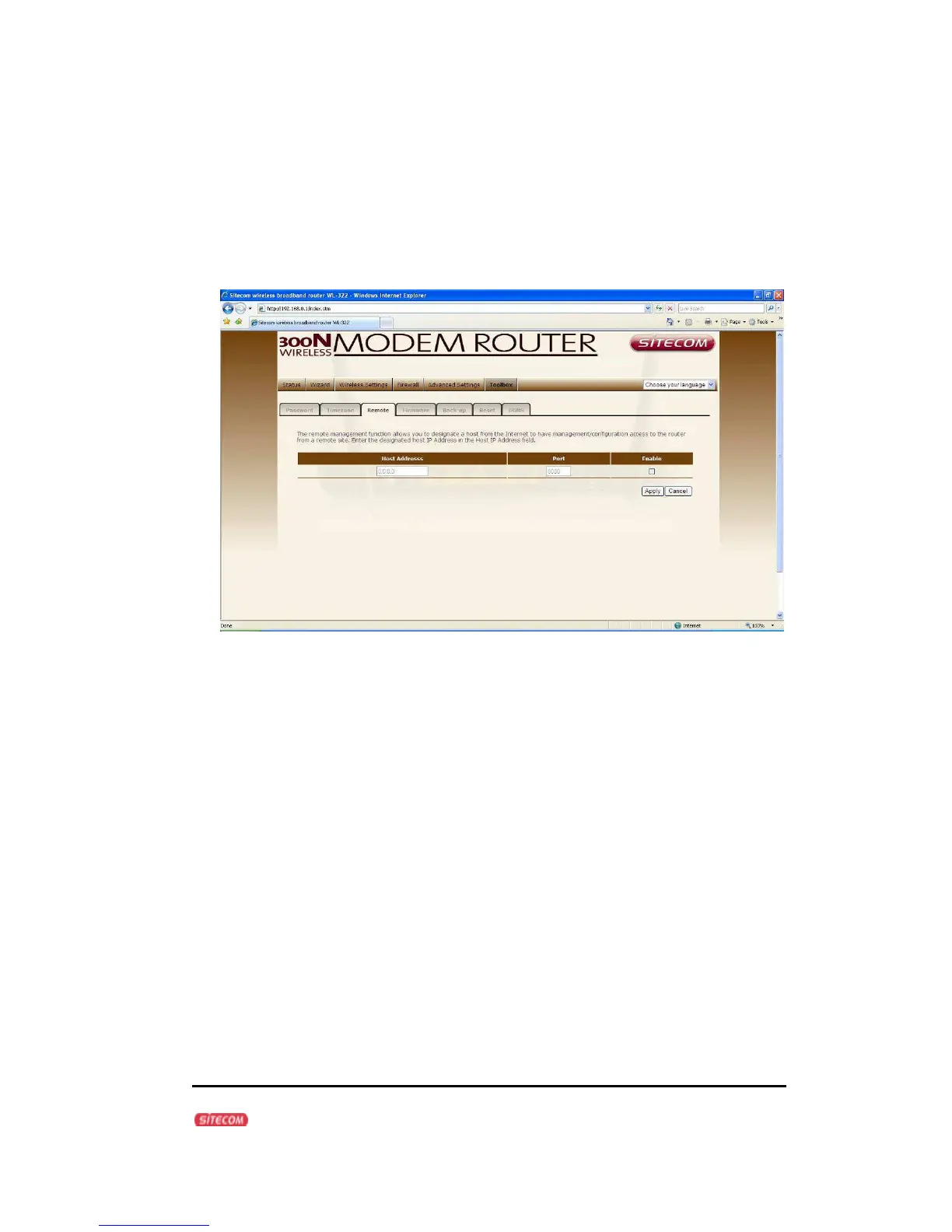 Internet the ability to configure the Broadband router from a remote site.