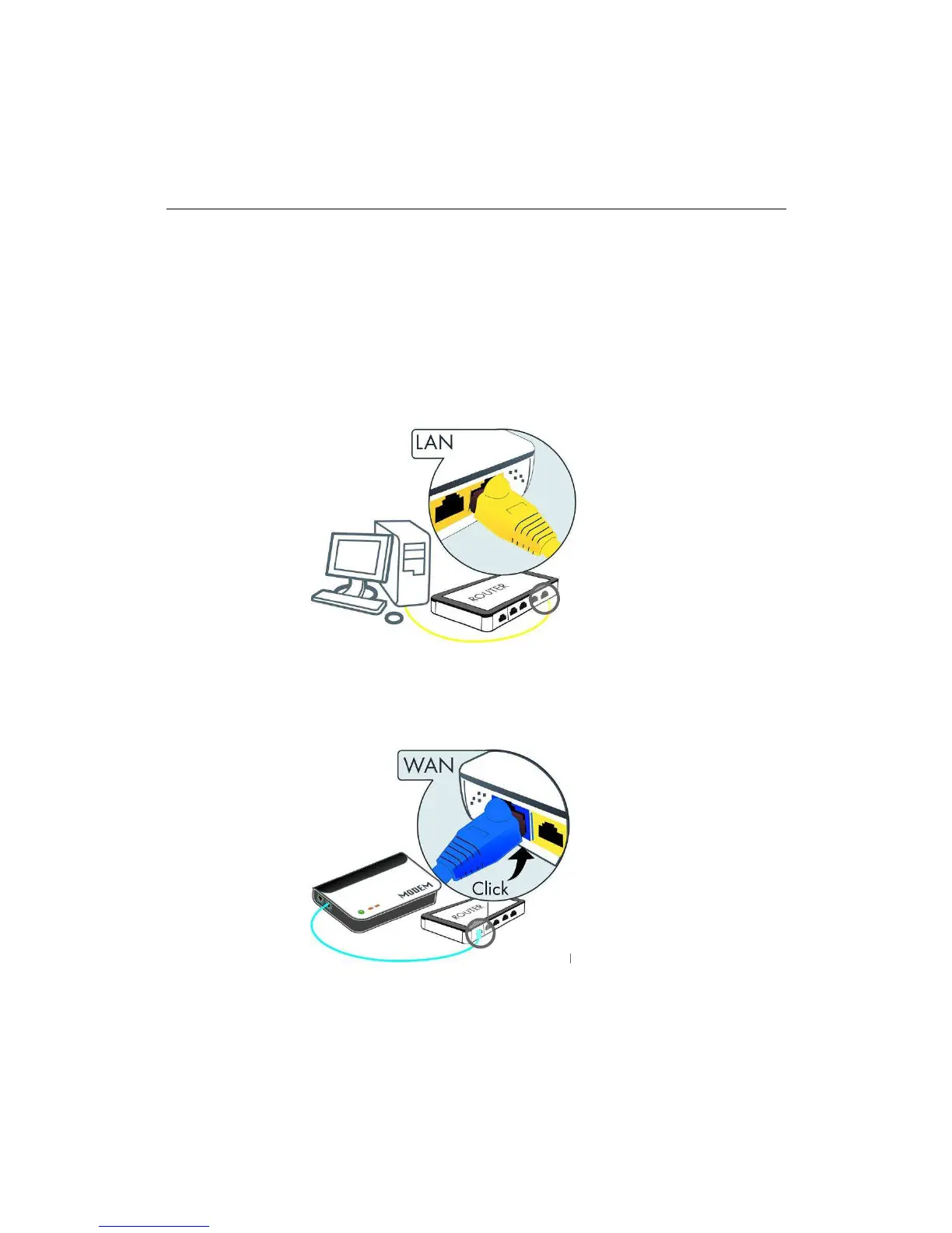 Plug one end of another Ethernet cable to the WAN port of the device and the