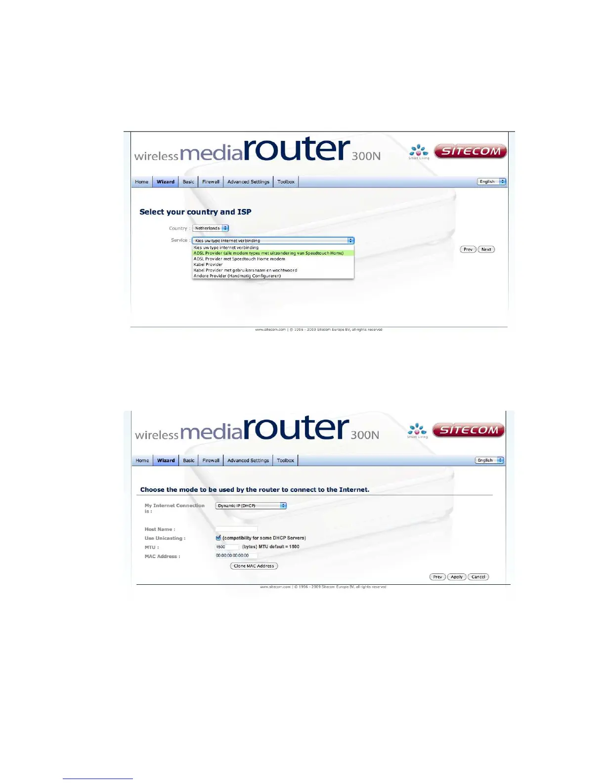 Select your country from the Country list. Select your internet provider. Click