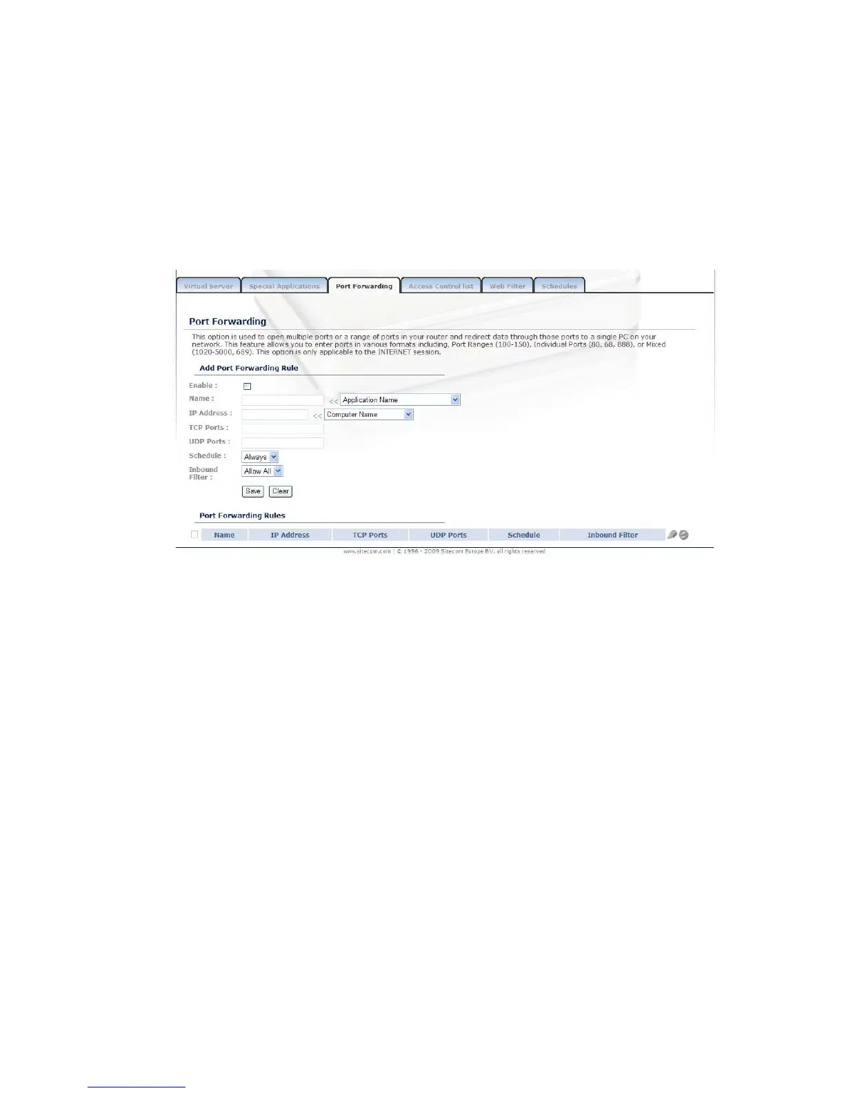 Click on the Save button to insert the entry into the Port Forwarding list.