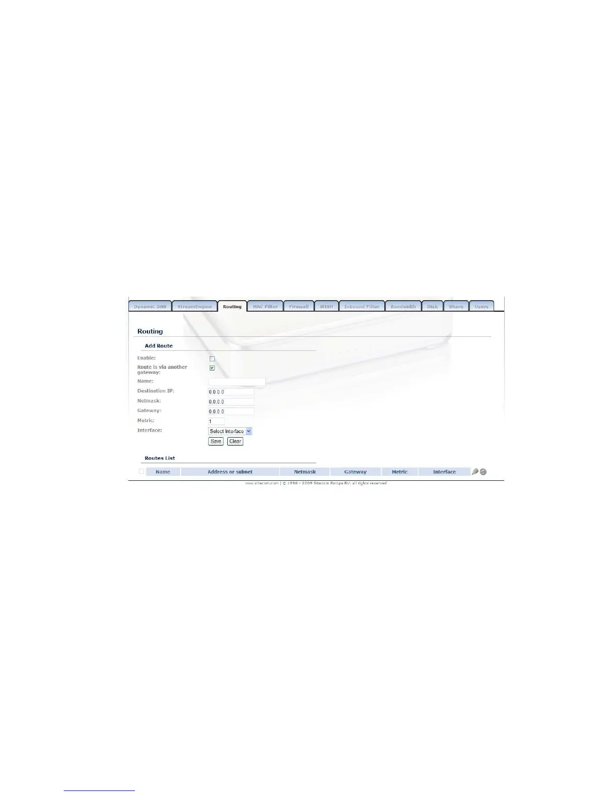 Enable: Place a check in this box to enable the routing table entry.