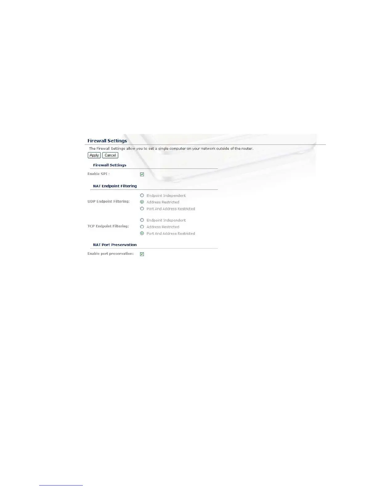 TCP / UDP NAT Endpoint Filtering options control how the router's NAT