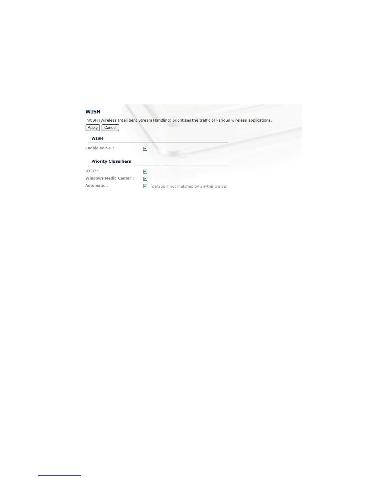 configure the classifiers. When enabled, this option causes the router to