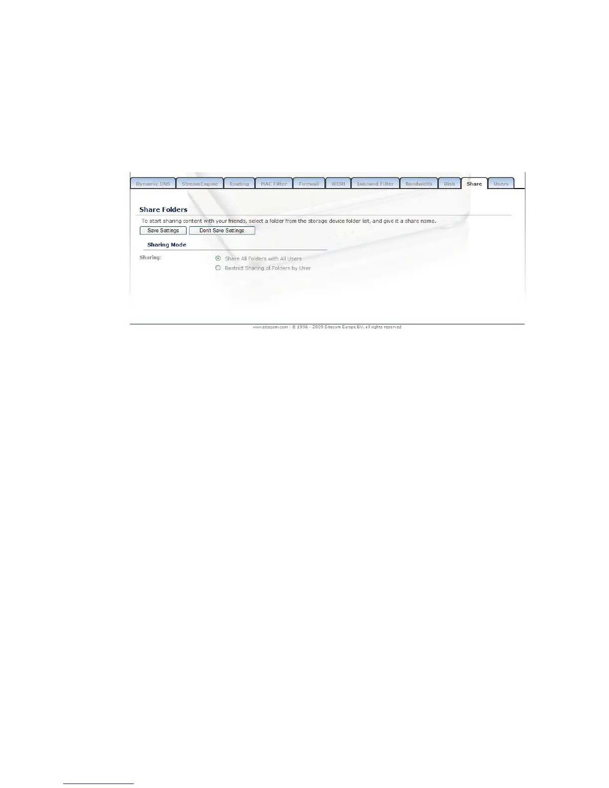 all users, or to restrict the sharing of folders. When Sharing-mode is set to