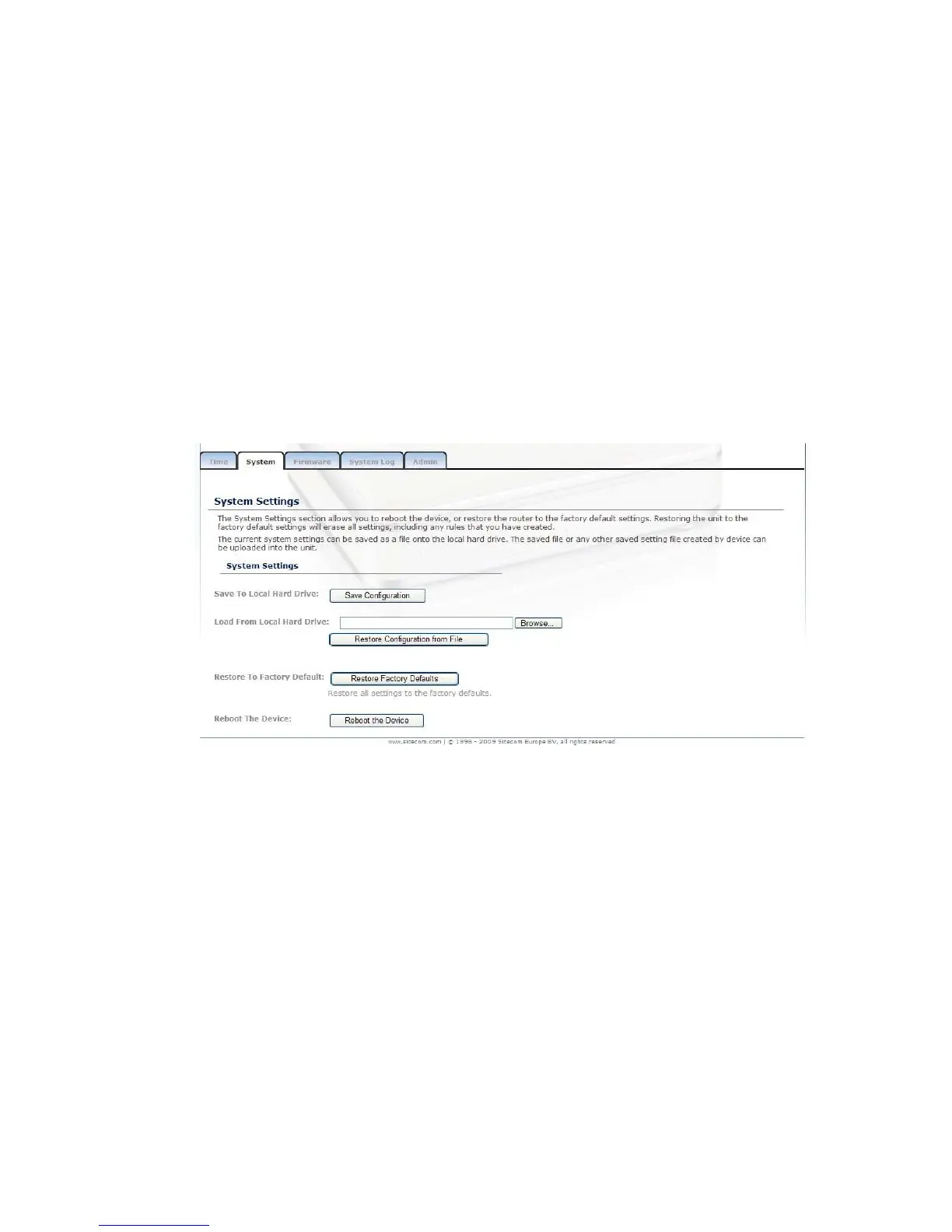 Click on the System link in the navigation menu. This page allows you to reboot