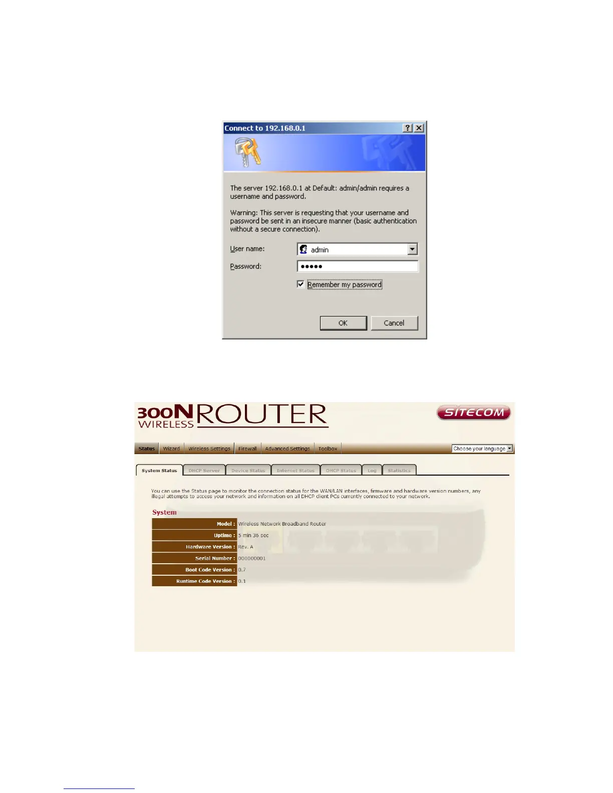 The System status section allows you to monitor the current status of your router