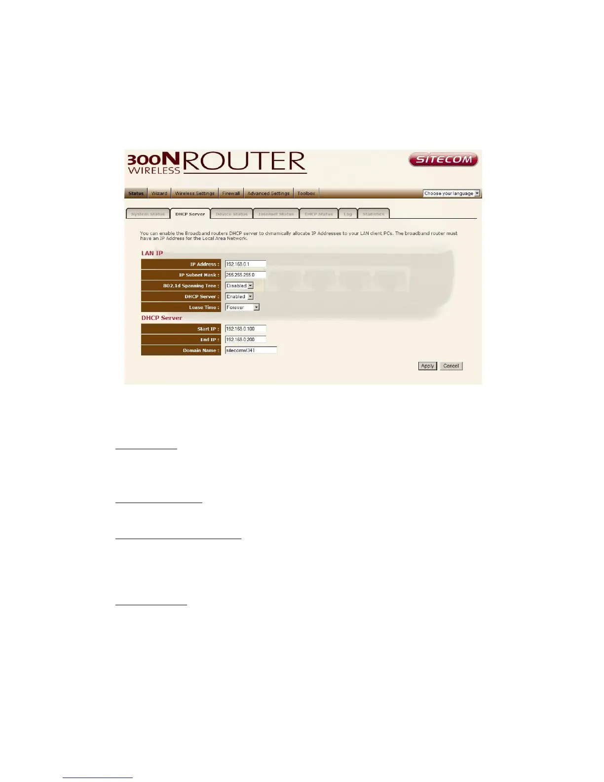 DHCP Server Enabled by default. You can enable or disable the DHCP server.