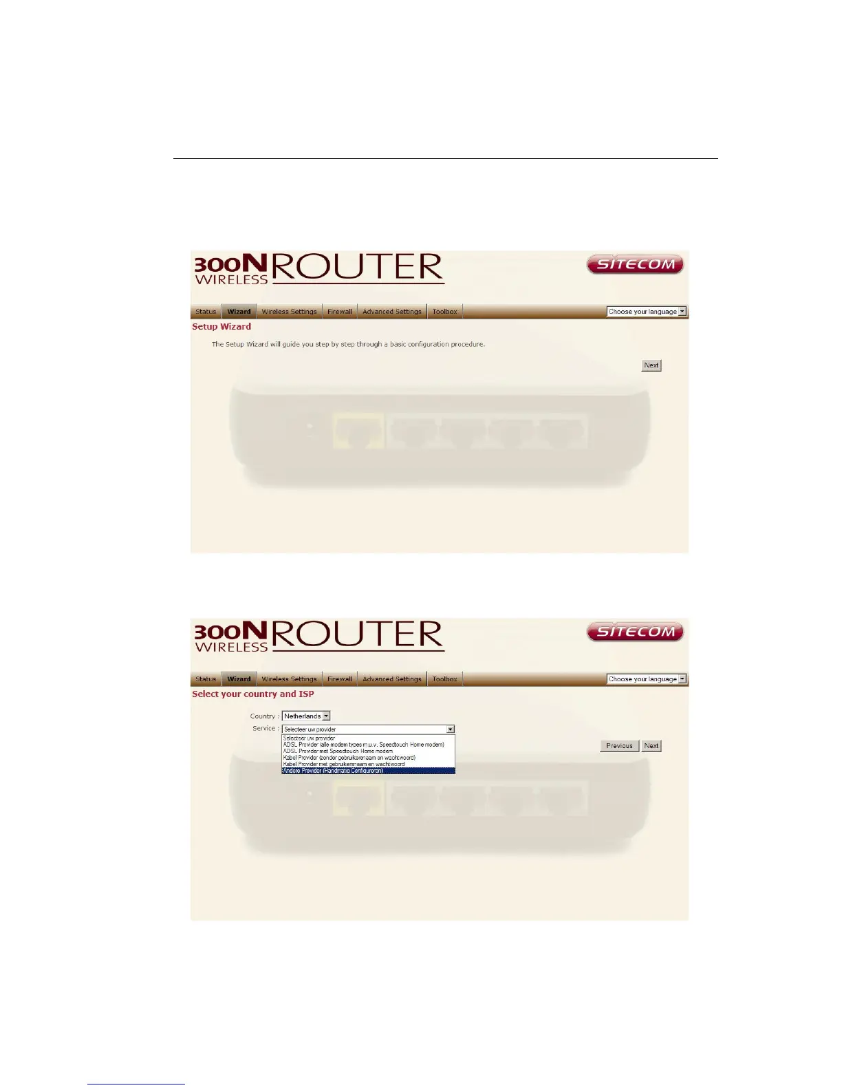 Select your country from the Country list. Select your internet provider. Click