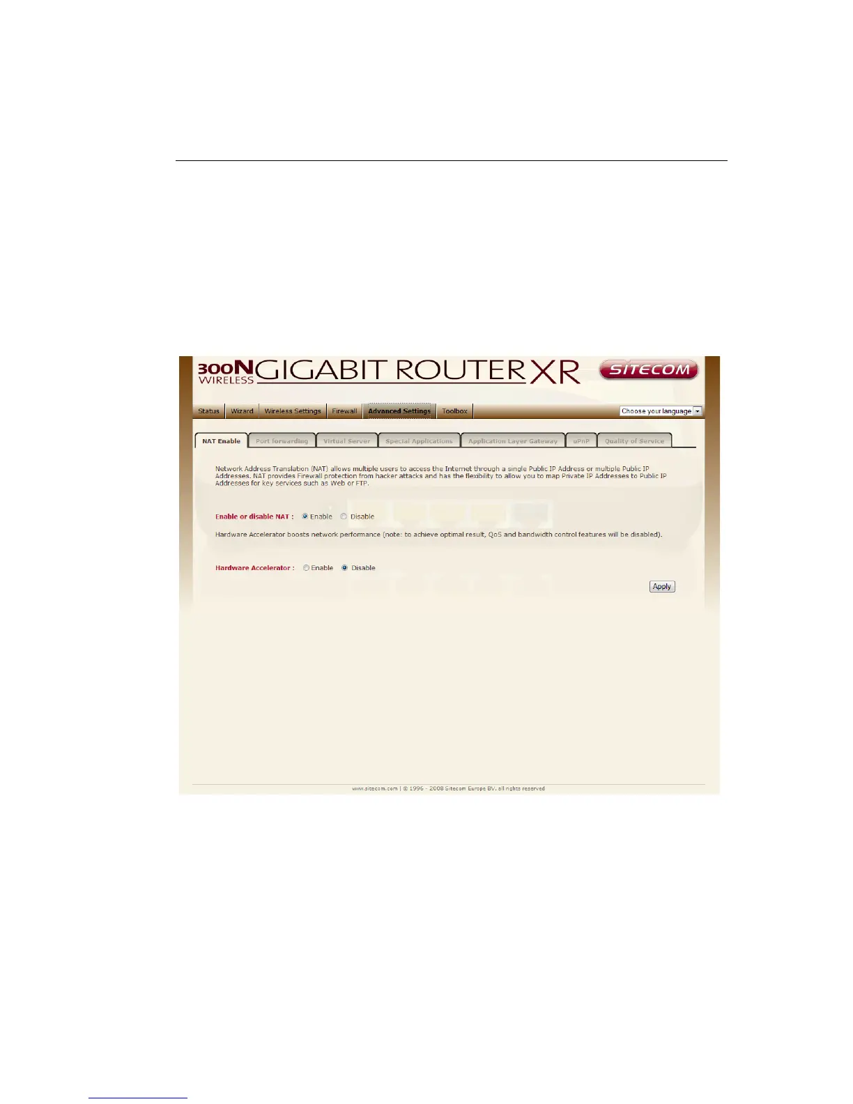 key services such as Websites and FTP. Select Disable to disable the NAT