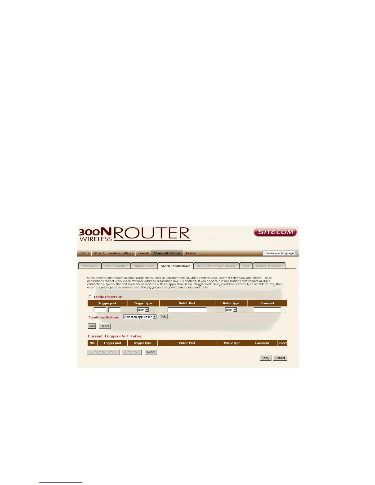 Trigger Port This is the out going (Outbound) range of port numbers for this
