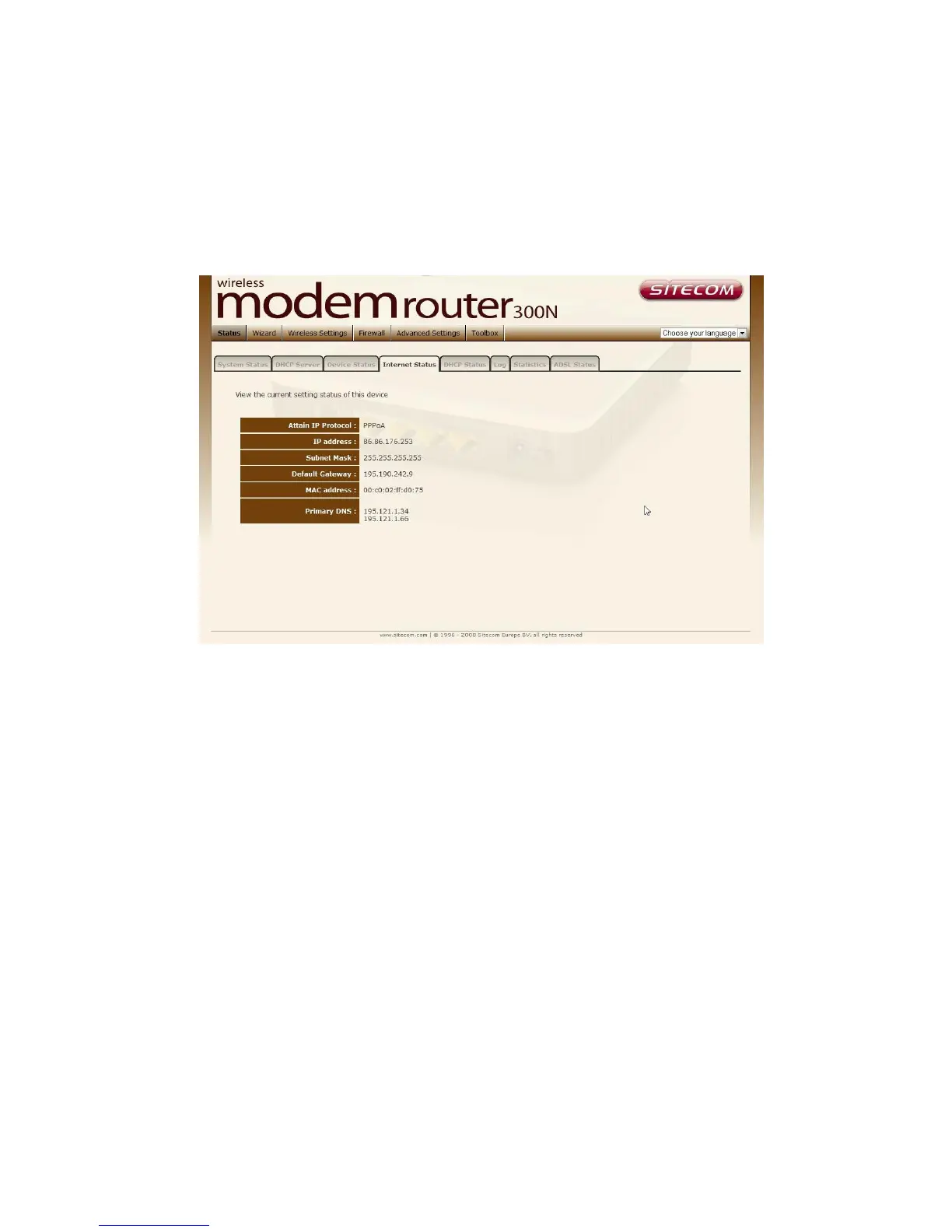 provider. It also displays the router’s WAN IP address, Subnet Mask, and ISP