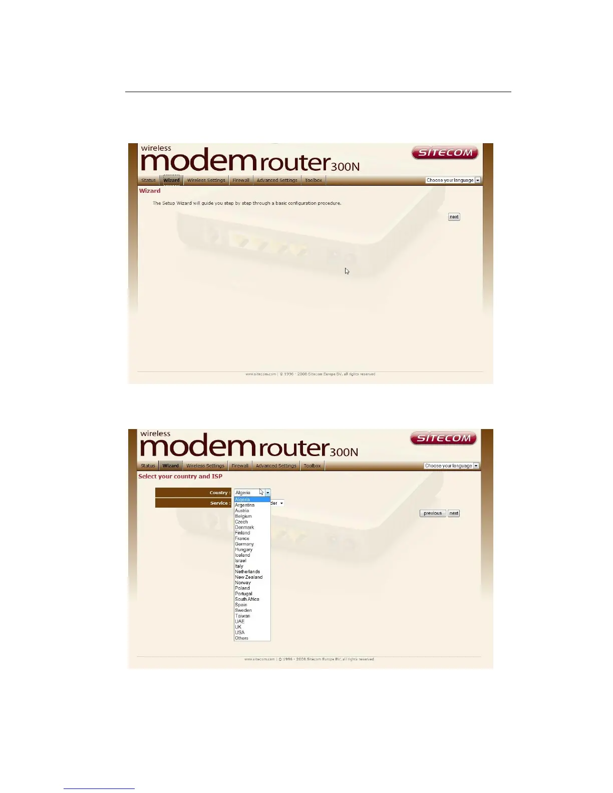 Click Wizard to configure the modem. The Setup wizard will now be displayed;