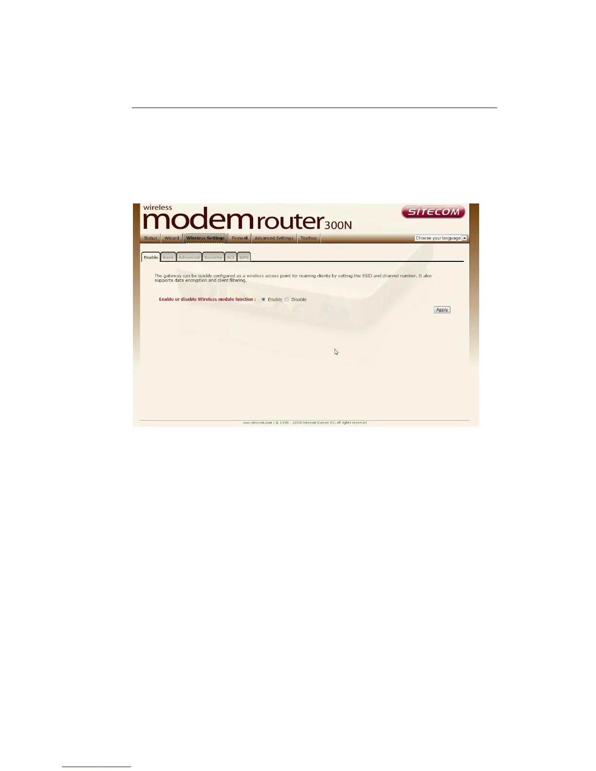 Enable or Disable Wireless function here. Click Apply and wait for module to