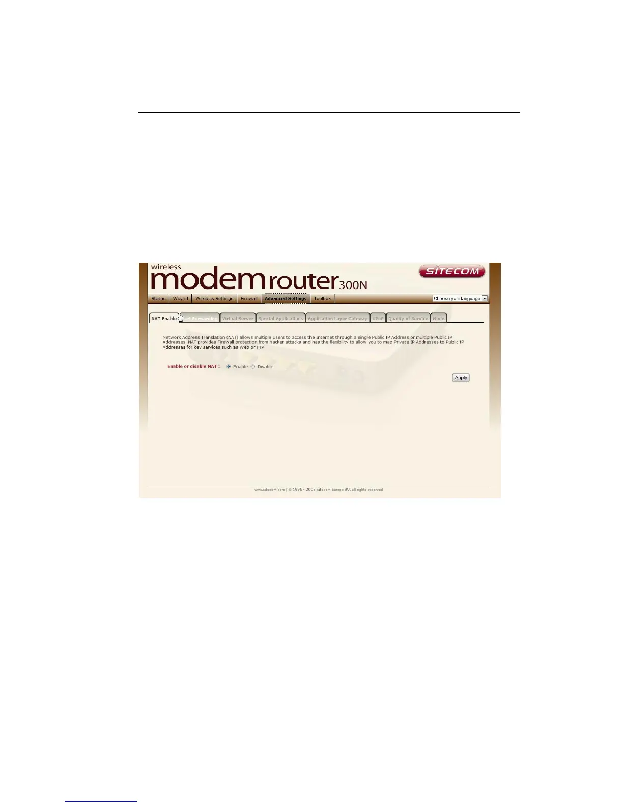 key services such as Websites and FTP. Select Disable to disable the NAT
